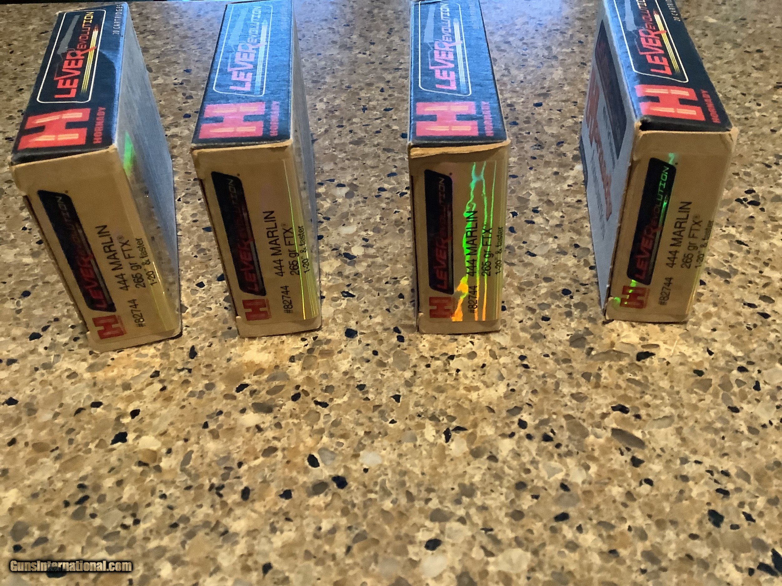 Description: Hornady 444 marlin leverevolution 265 gr FTX Ammo 70.00 per box 15.00 shipping Pending SOLD Rifle Caliber: .444 Marlin |