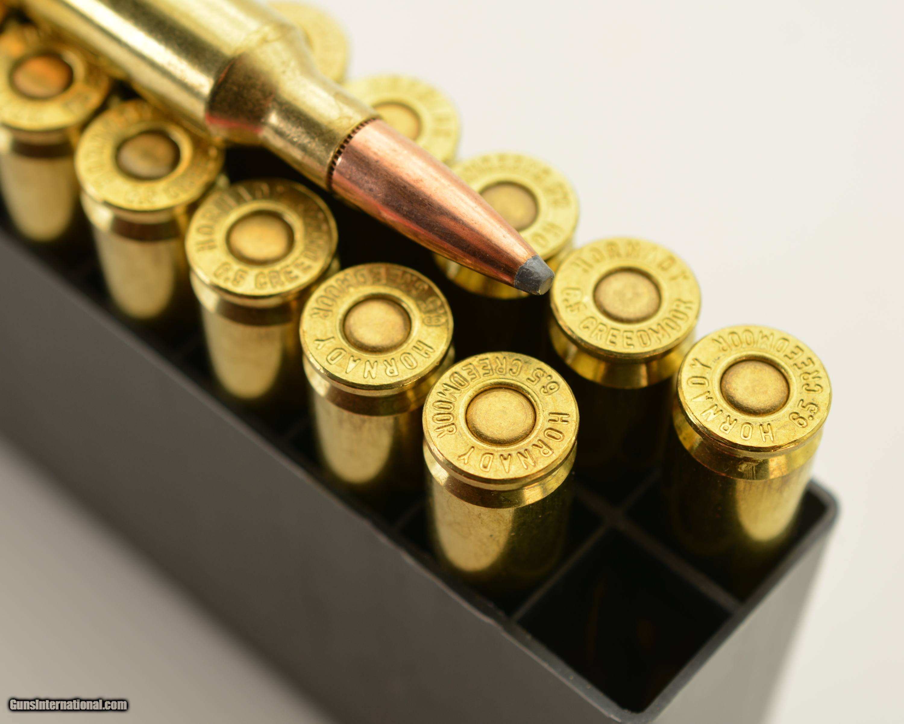 Description: This is a lot of two full boxes, 40 original rounds, of 6.5 Creedmoor American Whitetail ammunition manufactured by Hornady. The boxes and cartridges are in excellent, as new, condition. SOLD Manufacturer: Hornady Model: Ammo Caliber Info: 6.5 Creedmore Gauge Info: 6.5 Creedmore |