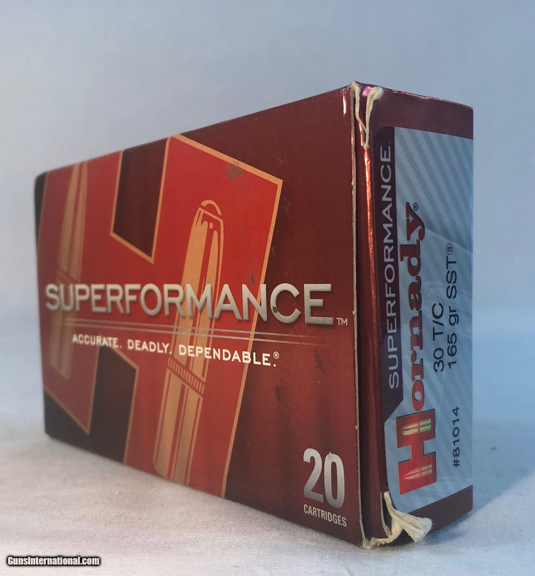Description: Hornady High Performance .30 Thompson Center. All boxes full and boxes and ammunition are in good condition. (4) boxes in all. Ground shipping is extra to the lower 48 states. (Except no ship to CA and NJ) This ammunition is sold as a collectors item only and we make no quarantees to its quality or functionality. Please know and abide by your local laws in regards to purchasing ammunition. Signature required upon delivery. SOLD |