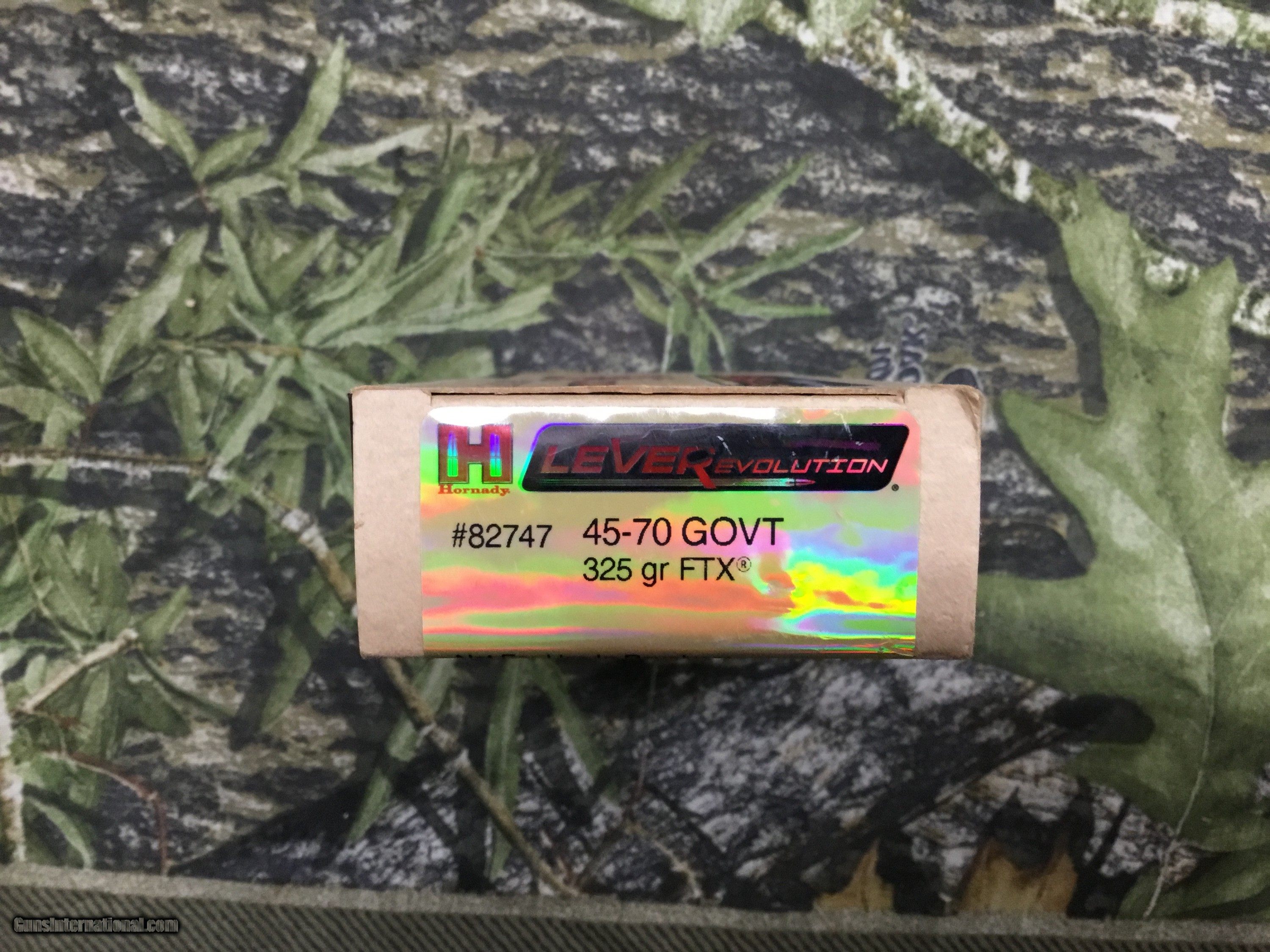 Description: Hornady Lever Revolution 45-70 Govt. 325 gr. FTC Ammo #82747 2 BXS ...... 20 rds each .......40 RDS TOTAL $79.00 $16.00 TO SHIP. If you are WEST of the Mississippi shipping will be $10.00 extra Thank you for looking at our items. If it is listed on the site, we still have it in the shop. If you wish to buy, hit buy it now and call the shop to pay. We are open Monday thru Friday 10:00am-5:00pm EST ...........Ask for Bree....... (803) 874-1060. Please CALL the shop first if you are in California. You need to verify you can have this weapon, since we DO NOT accept returns from California. NO INTERNATIONAL SALES. SOLD Rifle Caliber: .45-70 Government |