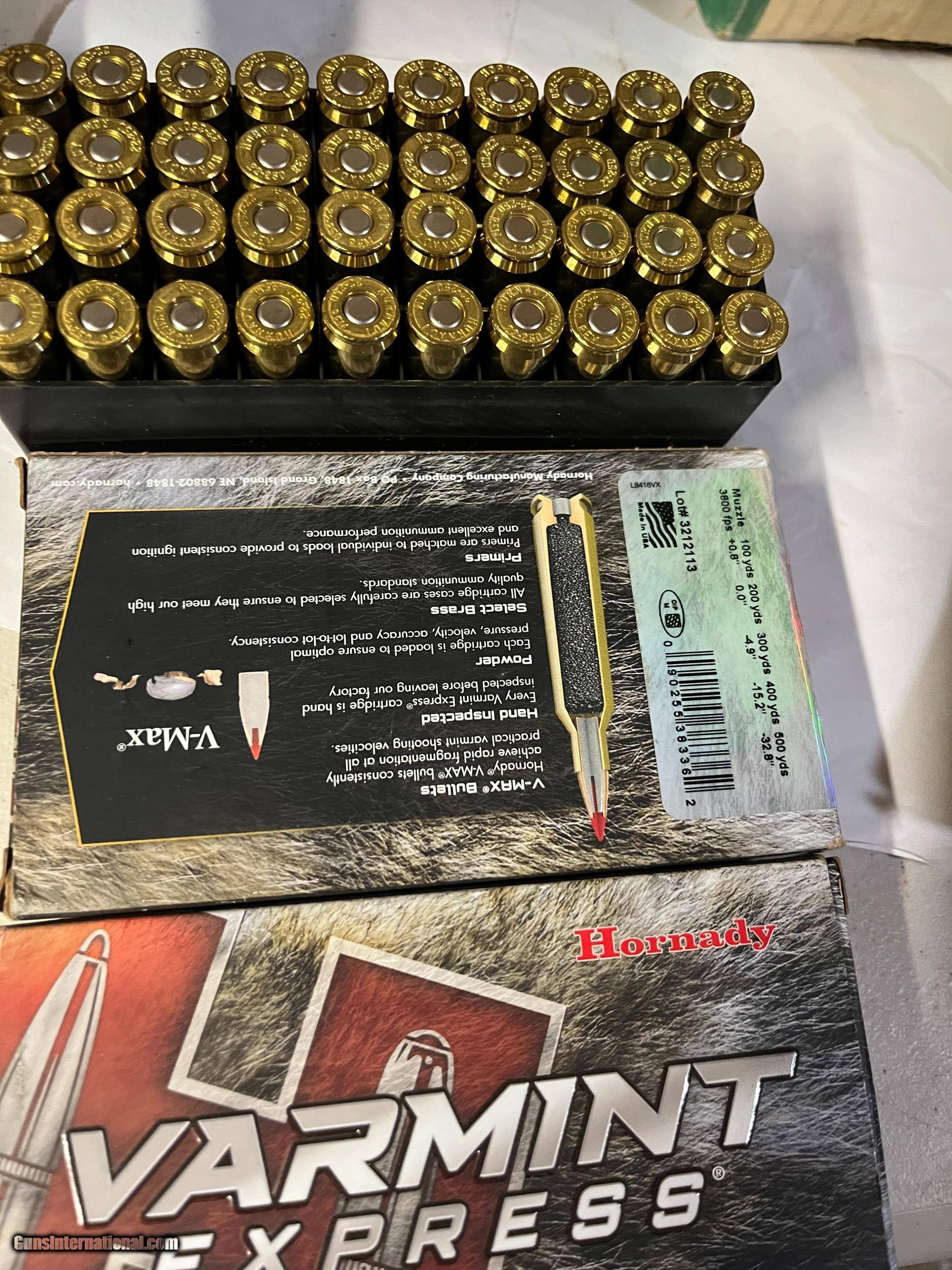 Description: 2 boxes of 20 each (40 rds) Hornady 55 grain Varmit Express 2 boxes of 20 each (40 rds) Remington 55 grain PSP SOLD |