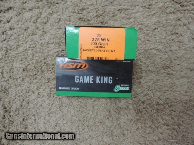 Description: 200 GR. SIERRA GAME KING JACKETED FLAT SOFT POINT. 20RDS / BOX, TWO 2 BOXES, $45.00 / BOX FREE SHIPPING NO CREDIT CARD FEES SOLD Rifle Caliber: .375 Winchester |