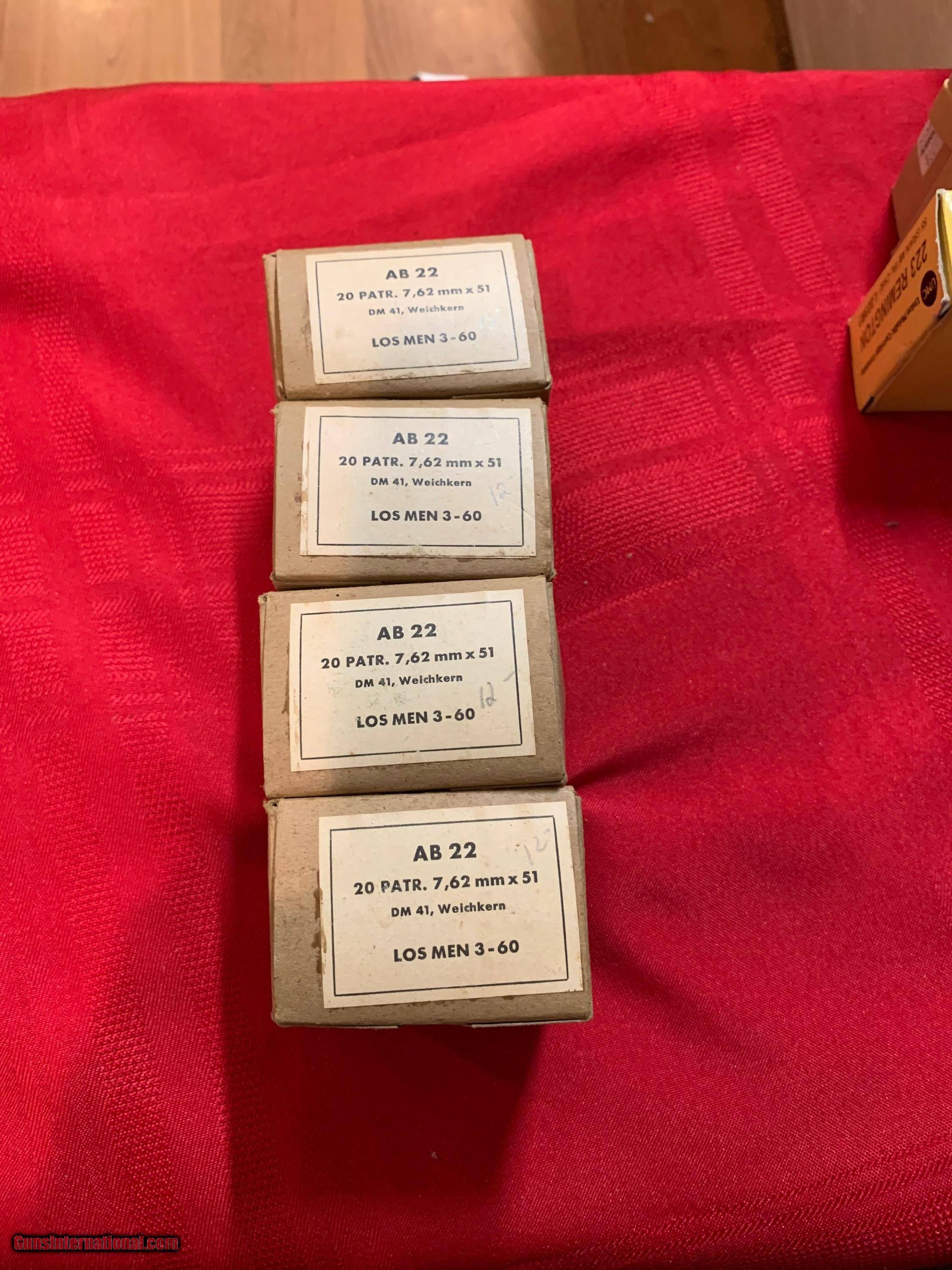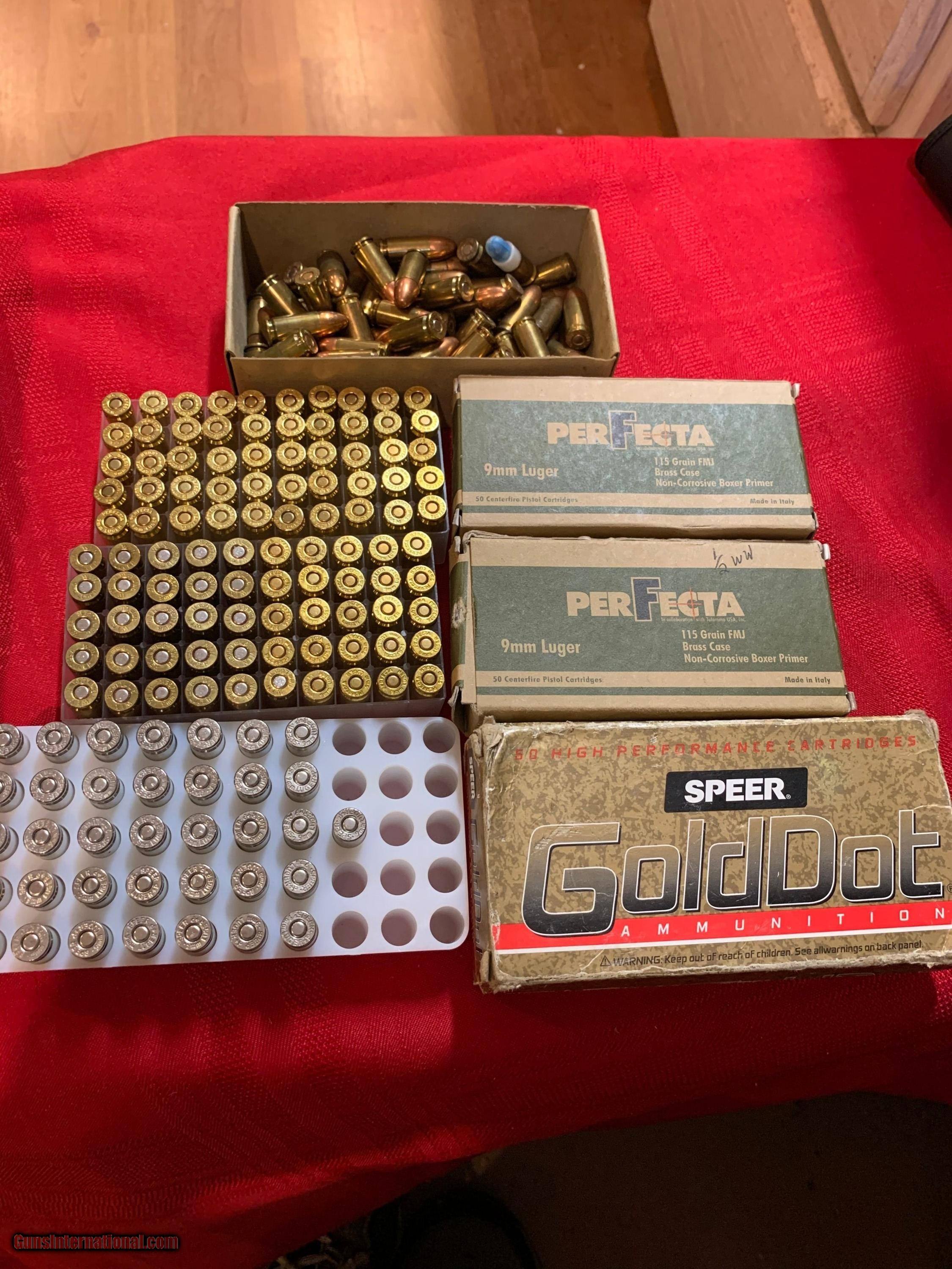 Description: 1. 5.56 Green tip IMI 60 rds. plus 10 rds. UMC FMJ 2. 7.62x51 FMJ headstamped MEN 80rds. 3. 9mm Speer GoldDot 124 gr.35 rds. , 4. Perfecta 9mm 115 gr. 25 rds. 5. W-W 9mm 115 gr. 25 rds. 6. PMC 9mm 115 gr. 65 rds. ALL FACTORY-- NO RELOADS SOLD |