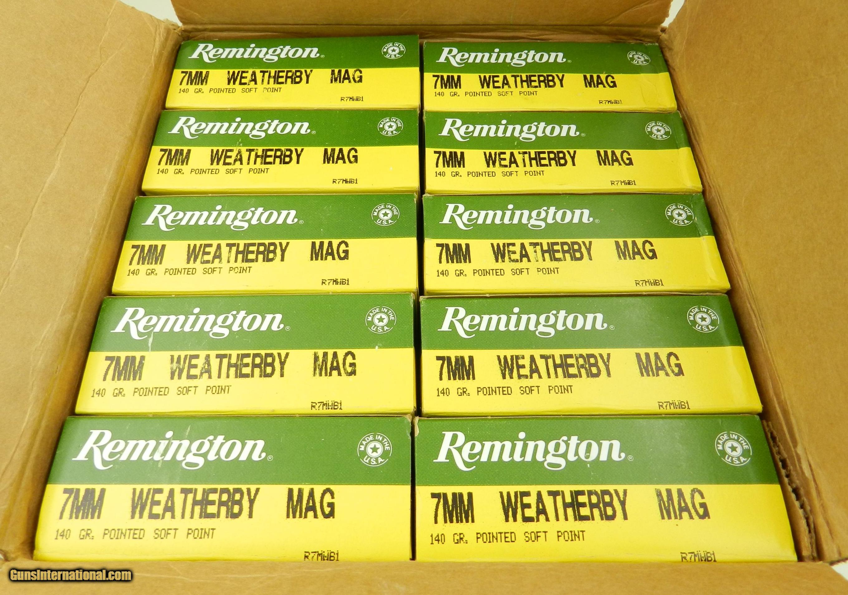 Lot of 10 Boxes of Remington 7mm Weatherby Magnum 140 grain PSP: 200 Rounds Total