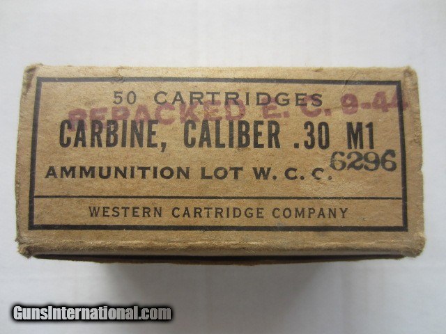 Description: M1 carbine ammo 50 round box Winchester manufactire Gov't issue one box only. Need more information always best to call our office 716-941-3946 SOLD |