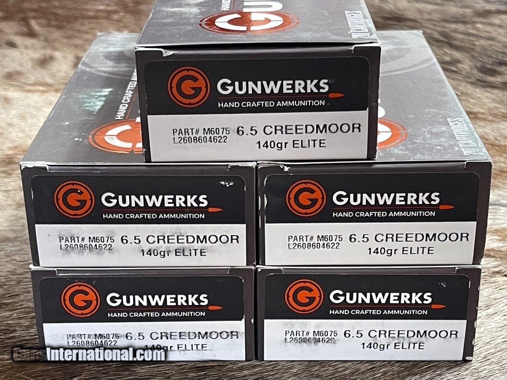 Description: NEW GUNWERKS AMMUNITION - 6.5 CREEDMOOR WITH 140 GRAIN BERGER ELITE HUNTER - SAME LOT - 100 ROUNDS IN 20/RD BOXES Additional Information