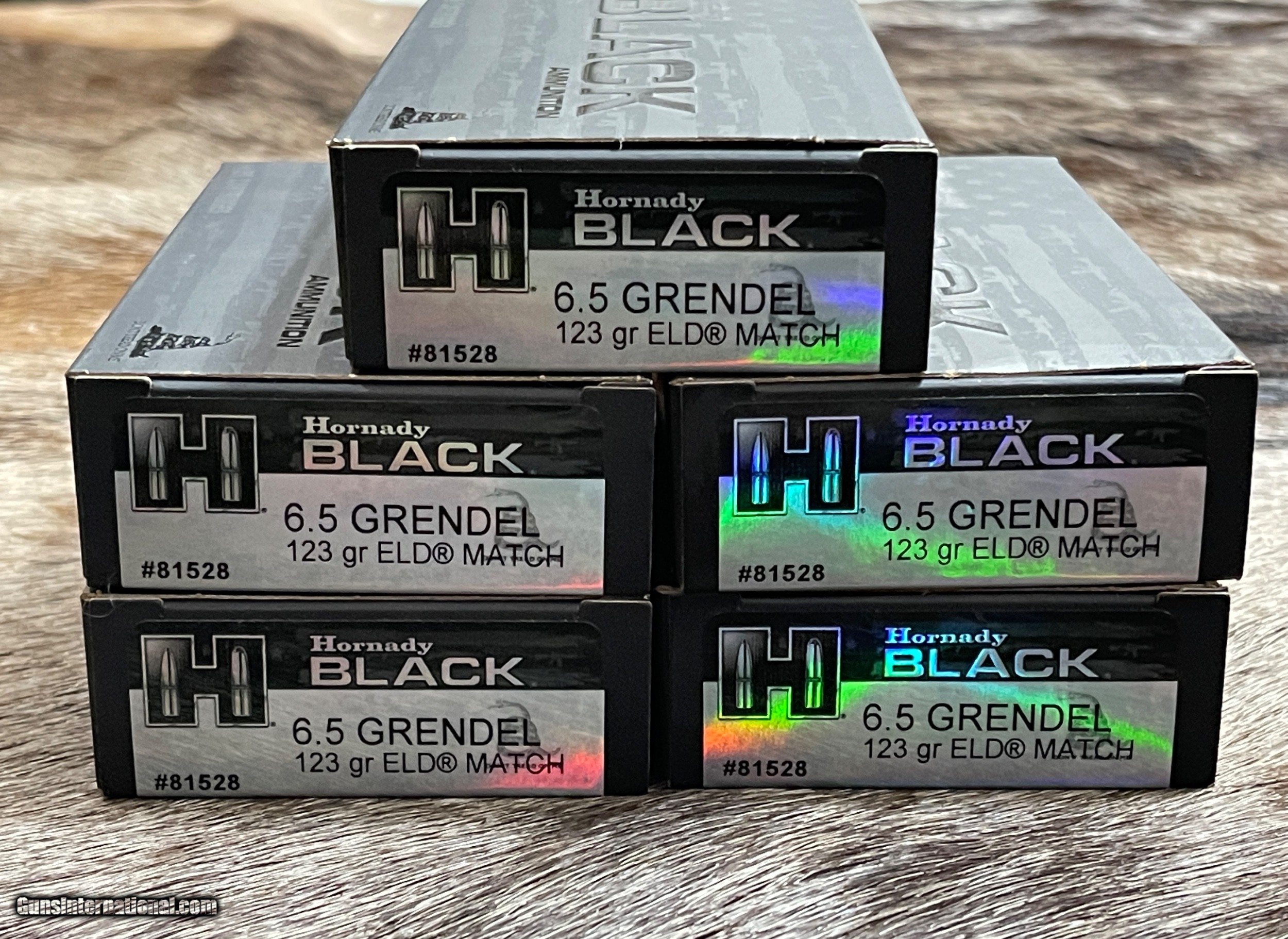 NEW 100 ROUNDS HORNADY BLACK 6.5 GRENDEL 123GR ELD MATCH AMMUNITION 81528