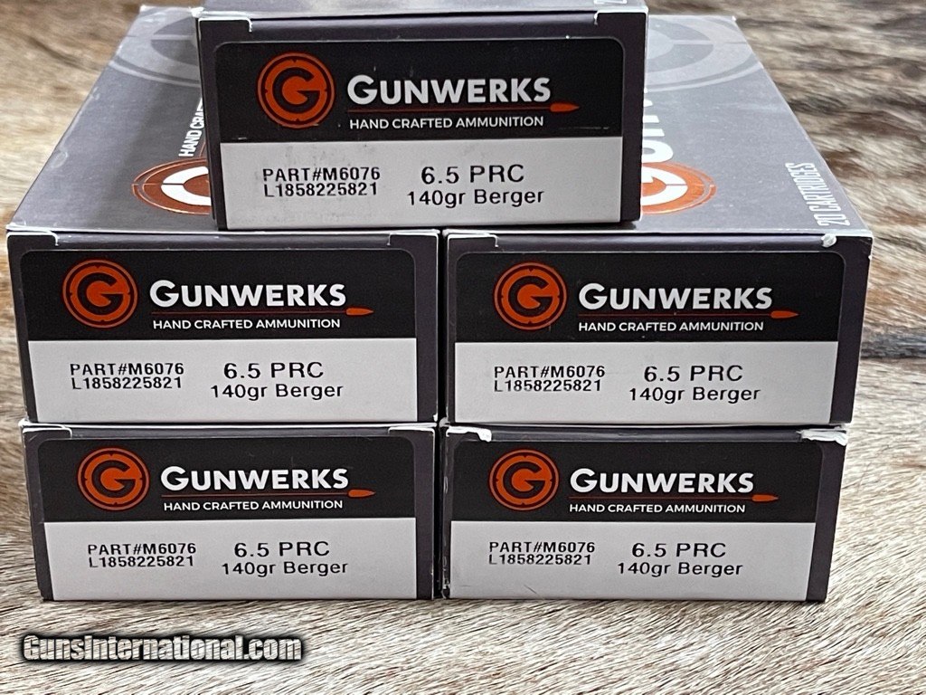 Description: NEW GUNWERKS AMMUNITION - 6.5 PRC WITH 140 GRAIN BERGER ELITE HUNTER - SAME LOT - 100 ROUNDS IN 20/RD BOXES Additional Information