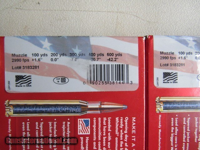 Description: NEW OLD STOCK Hornady American Whitetail 25-06 Rem ammo with the 117 grain Interlock bullet suitable for little brown furry rodents, antelope, deer, and hogs. It can be used in all bolt action and single shot rifles. You get two full boxes of 20 for a total of 40 rounds for your money. They are from the same lot as shown by the number on the outside label. Don't miss out, they won't last long... If you are a registered user of this and want this ammo, click the "buy now" button to end the listing and make it yours! I will get an email with your contact information and I will get a hold of you to complete the sale. TERMS: PLEASE KNOW YOUR LOCAL LAWS AS I DON'T KNOW THE LAWS FOR EVERY STATE. BY PURCHASING YOU CERTIFY YOU ARE AT LEAST 21 YEARS OLD AND CAN LEGALLY PURCHASE AMMUNITION DIRECTLY. PHOTO ID REQUIRED. SALES TO NEW YORK STATE MUST GO THROUGH AN FFL, NO EXCEPTIONS! No international sales. 3 day non-use inspection. Buyer pays return shipping. Payment by bank check, personal check or money order. Now accepting payments through Zelle. All major credit cards accepted with 4% convenience fee added. Always interested in used long guns and used antique handguns so please contact me if you have anything for sale or trade. 315.251.4799 with questions or concerns. FREE SHIPPING!! SOLD Rifle Caliber: .25-06 Remington |