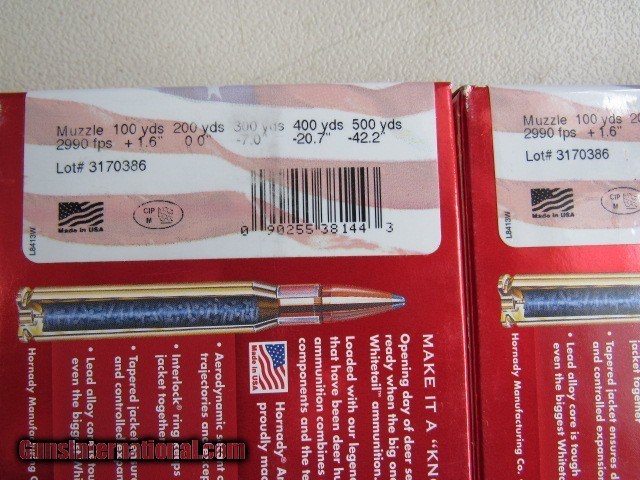 Description: NEW OLD STOCK Hornady American Whitetail 25-06 Rem ammo with the 117 grain Interlock bullet suitable for little brown furry rodents, antelope, deer, and hogs. It can be used in all bolt action and single shot rifles. You get four full boxes of 20 for a total of 80 rounds for your money. They are from the same lot as shown by the number on the outside label. Don't miss out, they won't last long... If you are a registered user of this and want this ammo, click the "buy now" button to end the listing and make it yours! I will get an email with your contact information and I will get a hold of you to complete the sale. TERMS: PLEASE KNOW YOUR LOCAL LAWS AS I DON'T KNOW THE LAWS FOR EVERY STATE. BY PURCHASING YOU CERTIFY YOU ARE AT LEAST 21 YEARS OLD AND CAN LEGALLY PURCHASE AMMUNITION DIRECTLY. PHOTO ID REQUIRED. SALES TO NEW YORK STATE MUST GO THROUGH AN FFL, NO EXCEPTIONS! No international sales. 3 day non-use inspection. Buyer pays return shipping. Payment by bank check, personal check or money order. Now accepting payments through Zelle. All major credit cards accepted with 4% convenience fee added. Always interested in used long guns and used antique handguns so please contact me if you have anything for sale or trade. 315.251.4799 with questions or concerns. FREE SHIPPING!! SOLD Rifle Caliber: .25-06 Remington |