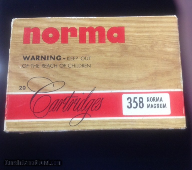 Description: **SOLD PENDING FUNDS** Up for is a factory loaded box of 20 Norma .358 Magnum Cartridges, 250 grains Soft Point. . Nickel copper jacket with a lathe turned cannelure. Box is in nice shape, missing one flap. Priced right for a quick sale!! This is for one box, however we have two available. Shipping will run $10.00. Thanks for looking! SOLD |