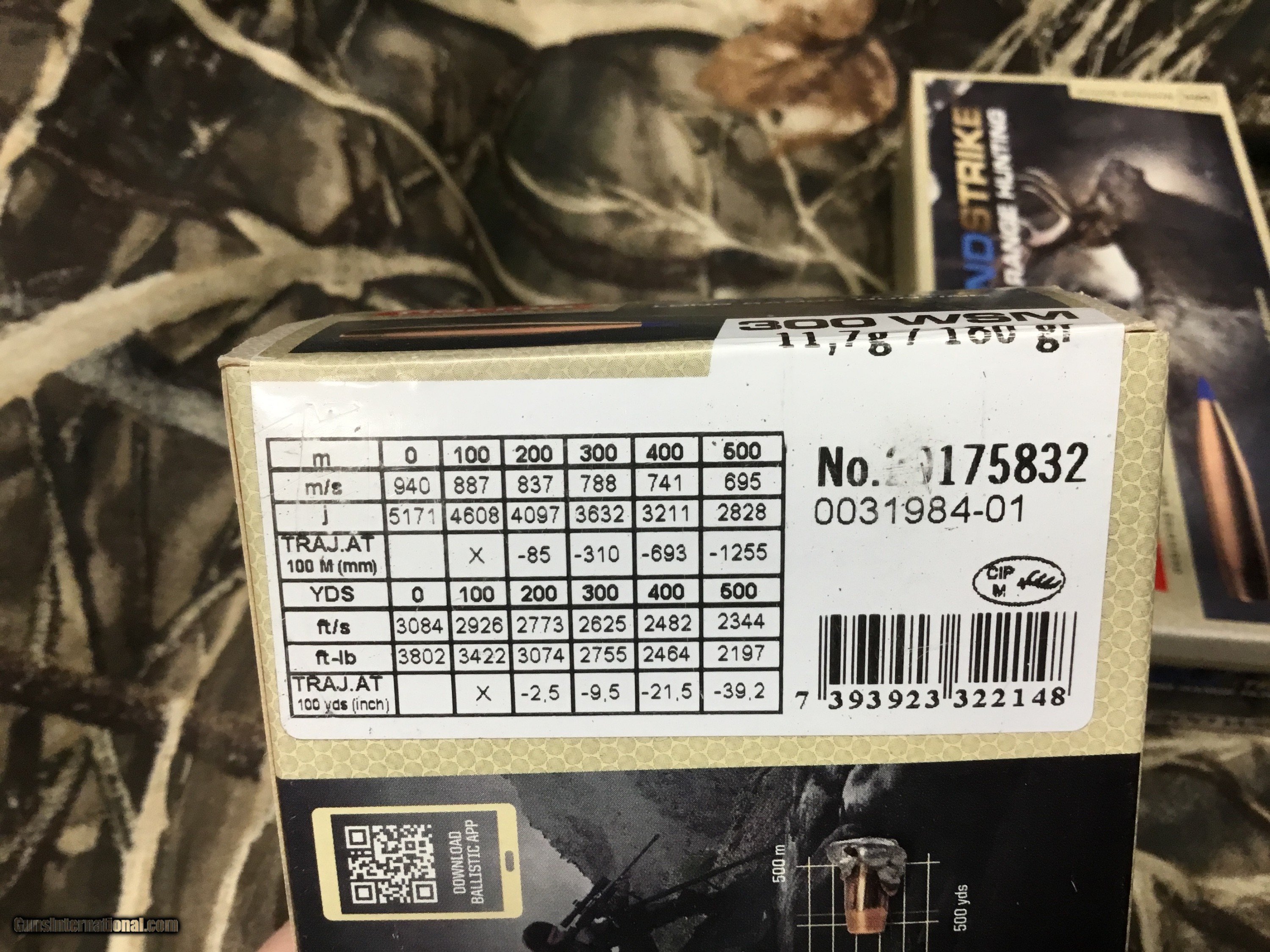Norma Bond Strike Long Range Hunting 300 WSM. 180 GR. ........60 ROUNDS