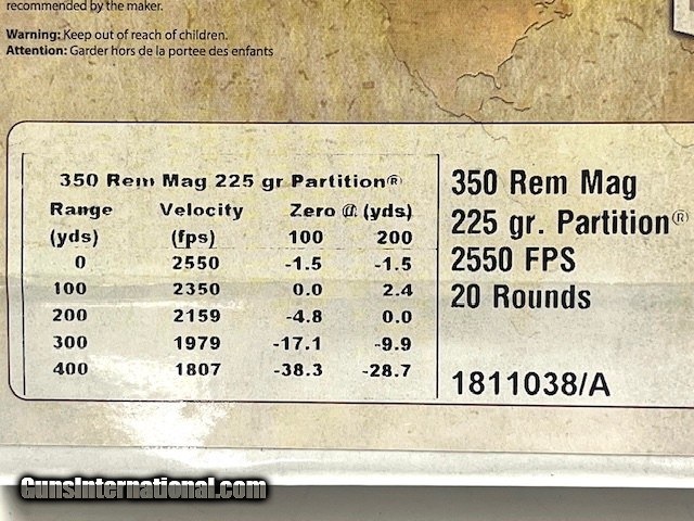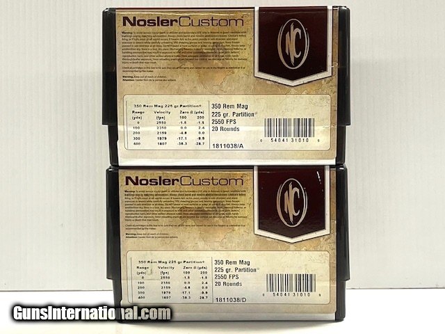 Nosler Custom 350 Rem Mag 225gr Partition 40 Rounds in Factory Sealed Cases