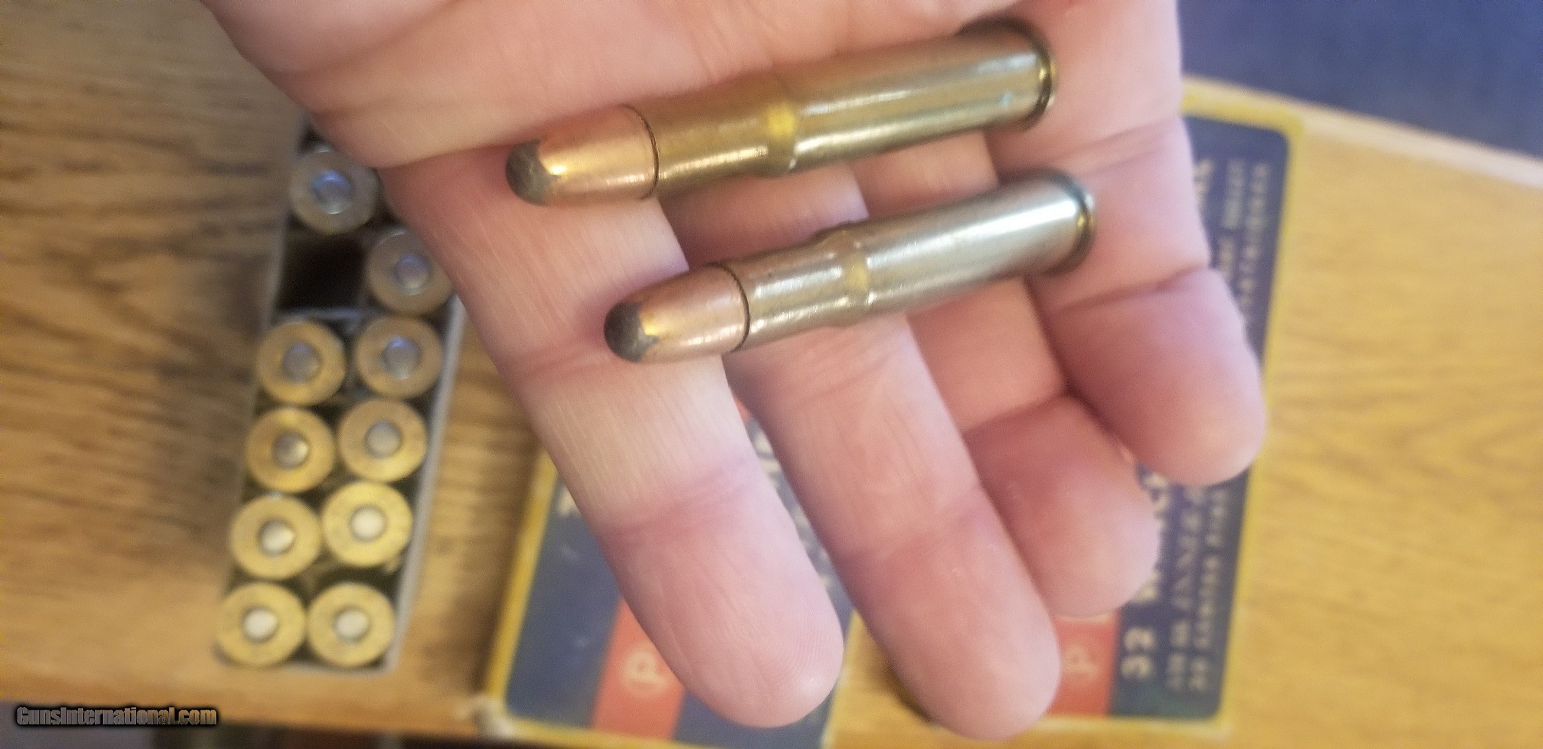 Description: 2 boxes of Peters 32 winchester special cartridges. One box is Hollow point. It has 18 hollow point and two soft point. The other box is full original. $180. for both. Shipping cost is $14. 40 rounds total SOLD |