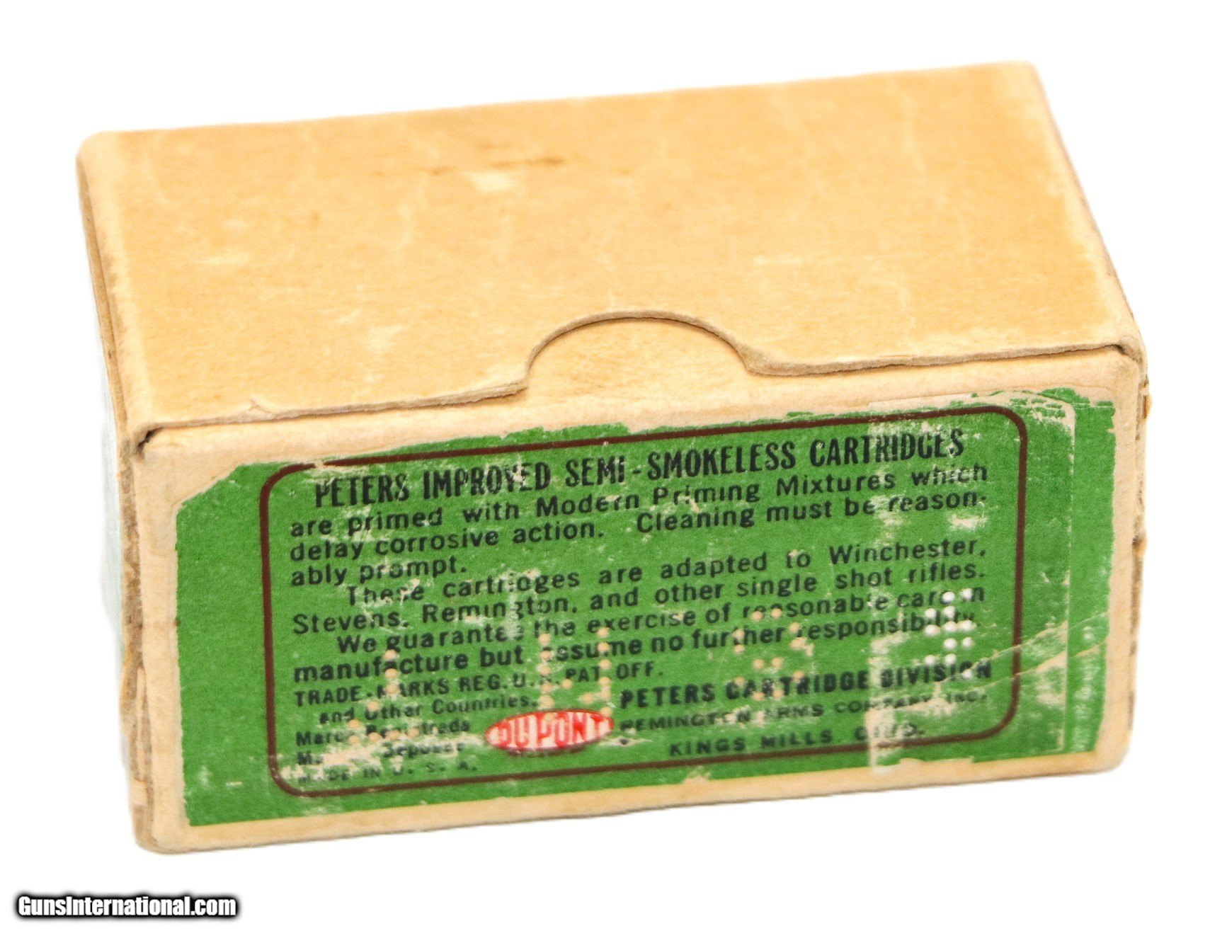 Description: Peters, Improved Semi-Smokeless, .22 Winchester Center Fire for .22 Stevens, Remington and other Single Shot Rifles. Ammo is excellent, Box is VG+ with some scuffs and light staining. Price: $250.00 Shipping: $13.50 Contact Seller |