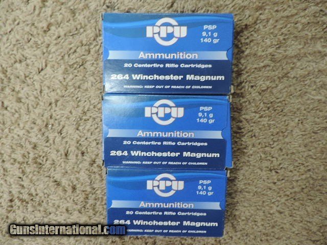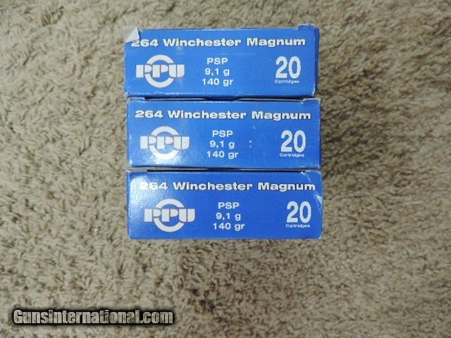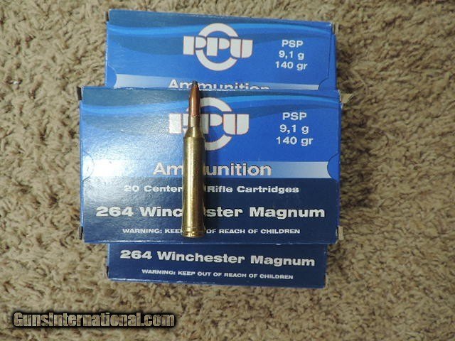 Description: 140 GR. PSP, 20RDS. BOX- $35.00 BOX, THREE BOX MIN.- TOTAL $105.00 FREE SHIPPING NO CREDIT CARD FEES. SOLD Rifle Caliber: .264 Winchester Magnum |