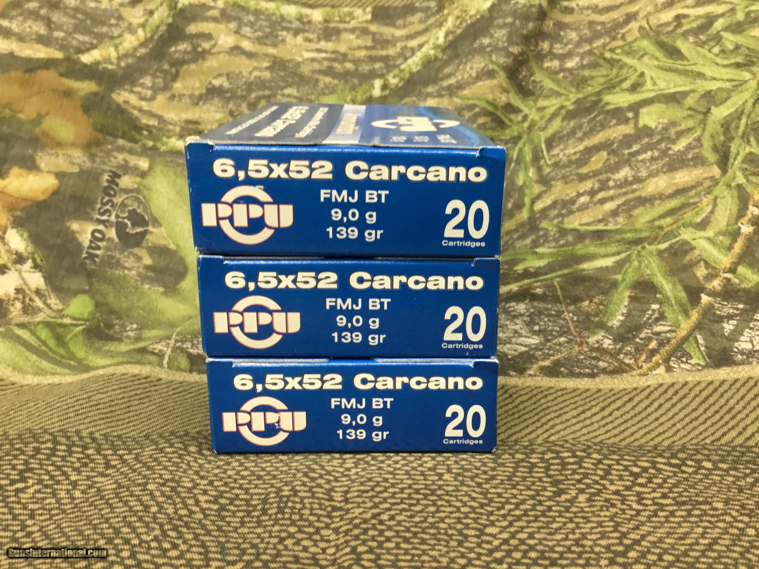 PPU 6.5X52 Carcano FMJ BT 139 gr Ammo...........60 rounds