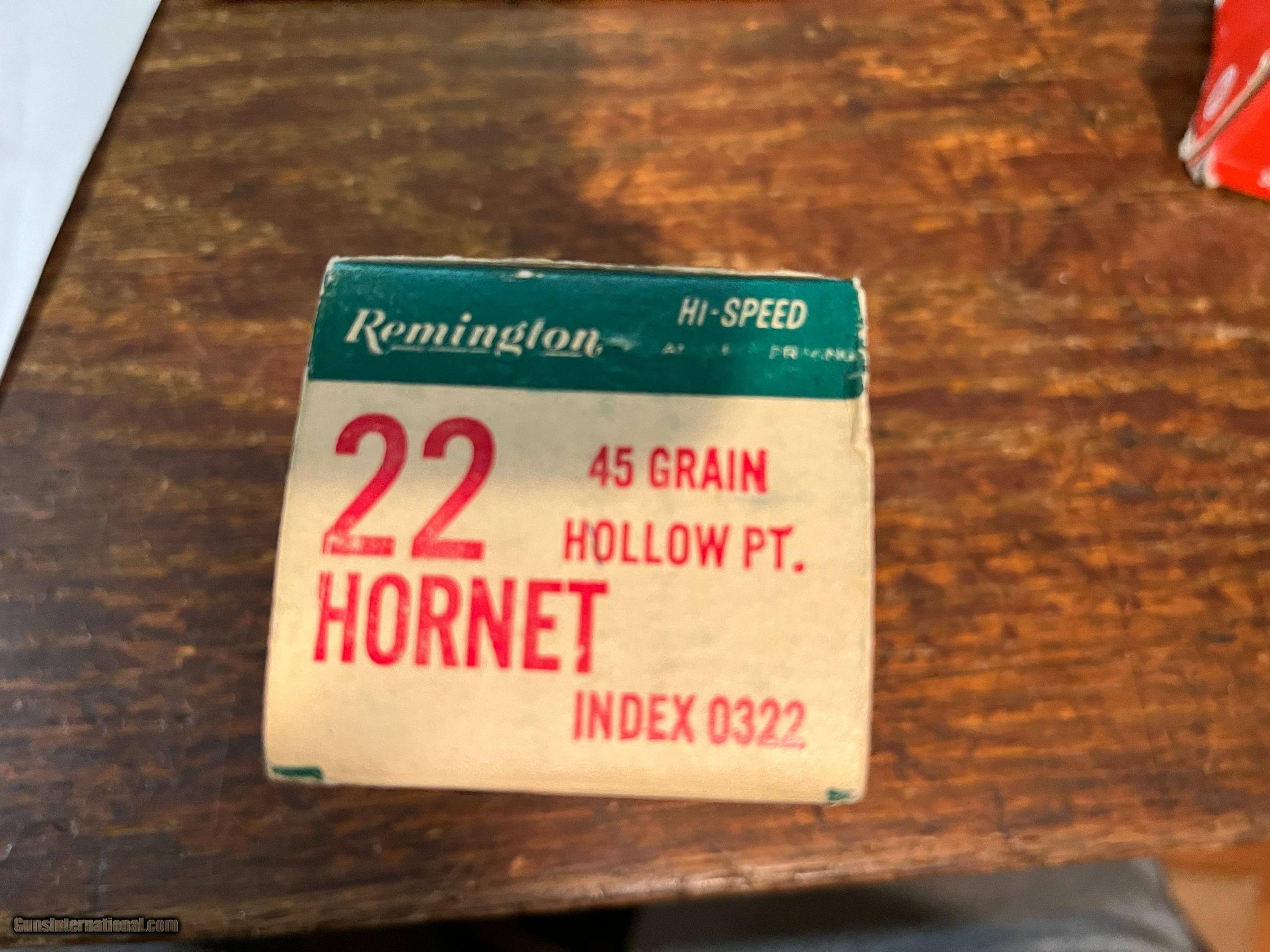 Description: Full factory box of 50 22 Hornet ammo. SOLD Rifle Caliber: .22 Hornet |