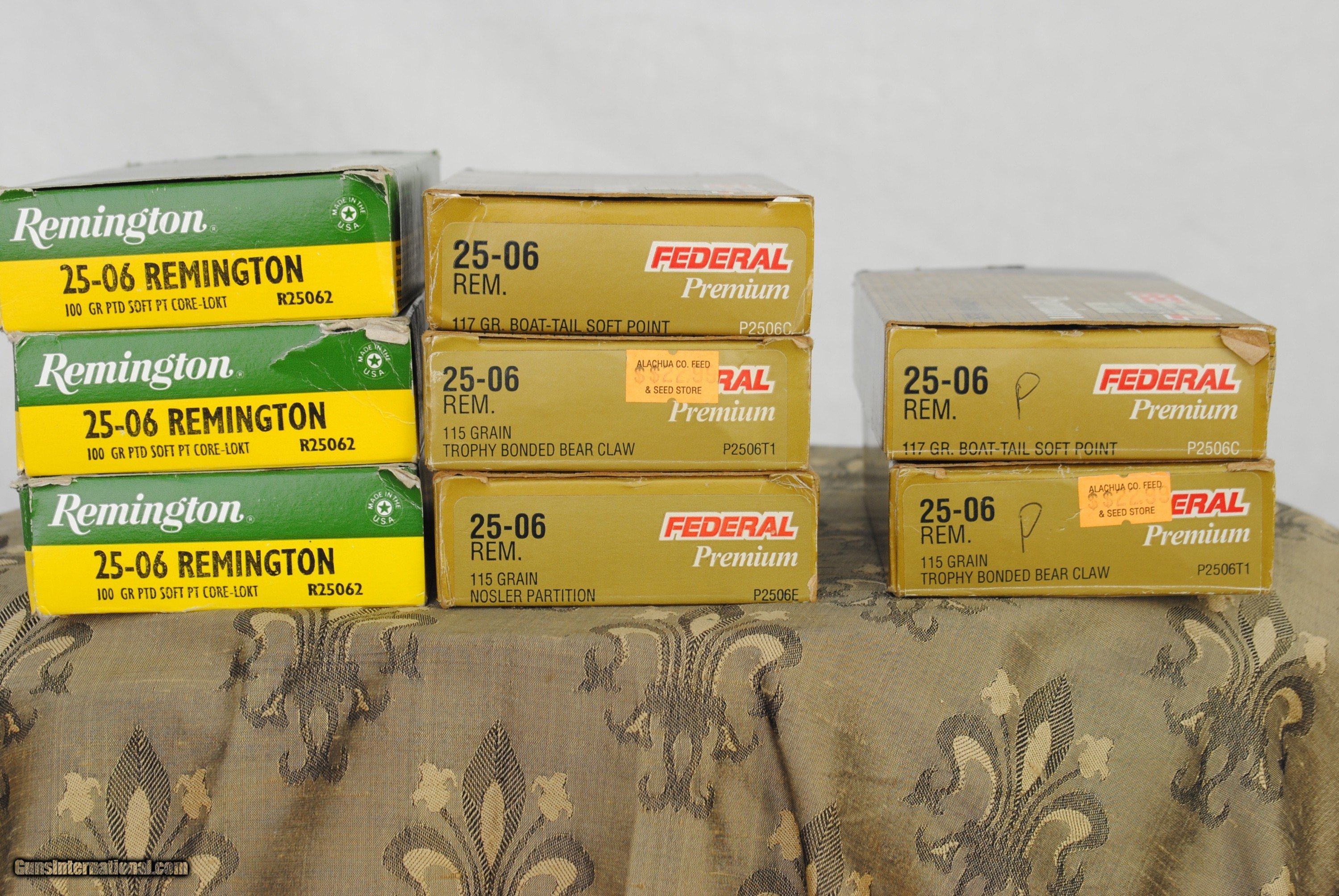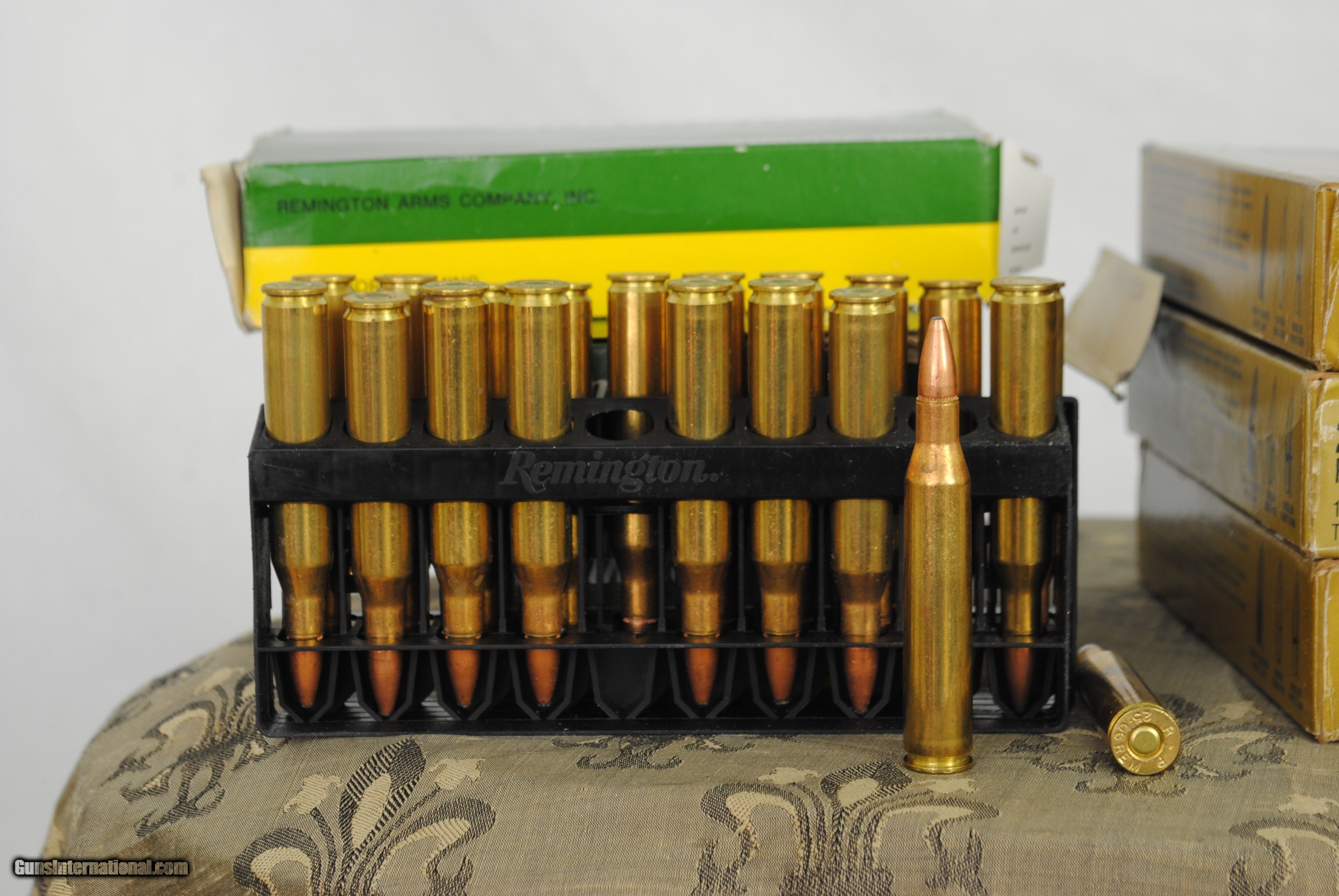 Description: Remington 25-06 Factory ammo - 143 rounds. Six full boxes and two partial boxes. Partial boxes are marked in pen with a "P". Shipping is $35. Must be legal to ship to your location.. SOLD Rifle Caliber: .25-06 Remington |