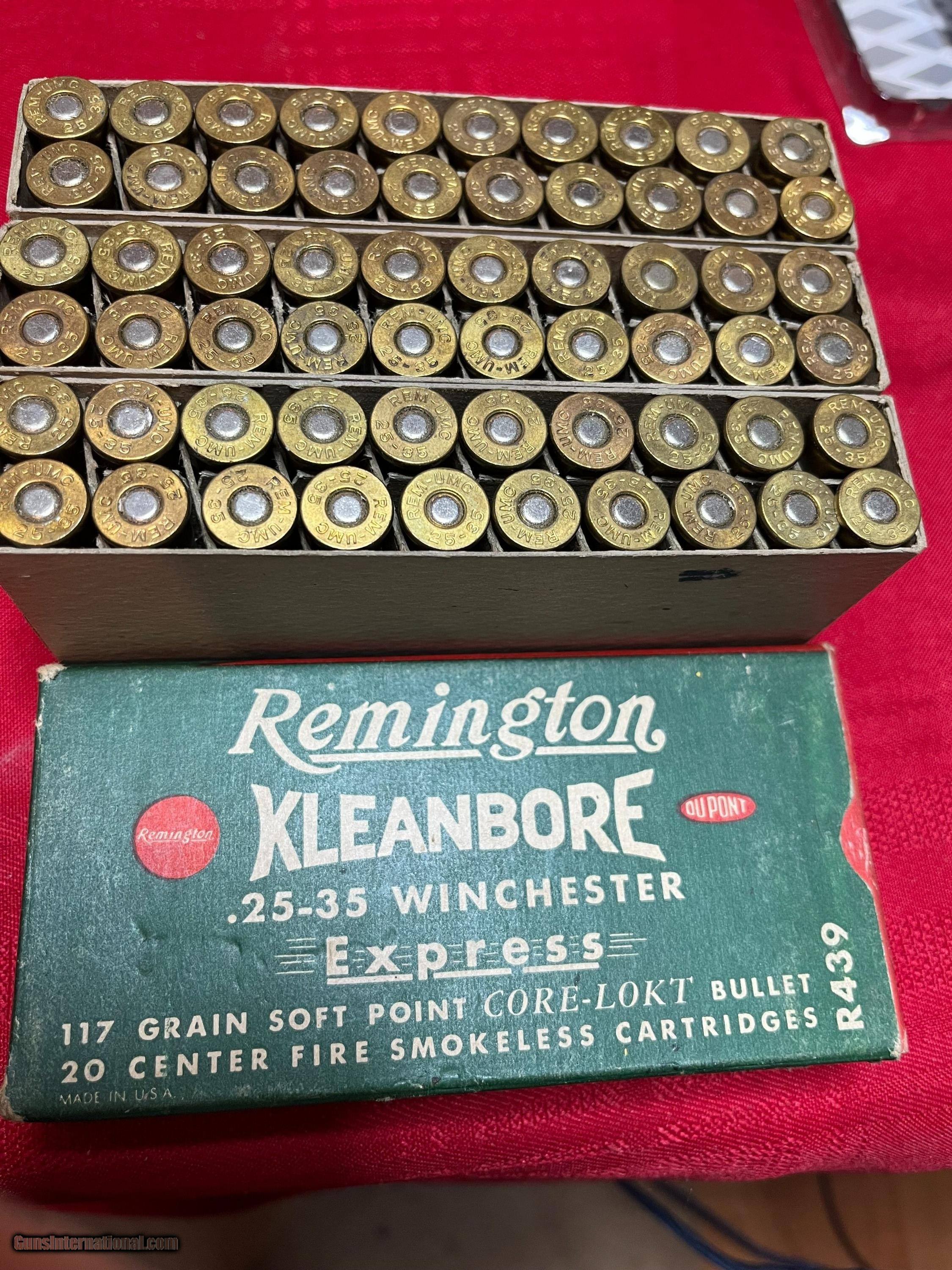 Description: Remington brand 25-35 Win. ammo. 117 grain soft point. Original ammo in original boxes. 3 boxes of 20. $130 for all SOLD Rifle Caliber: .25-35 Winchester |