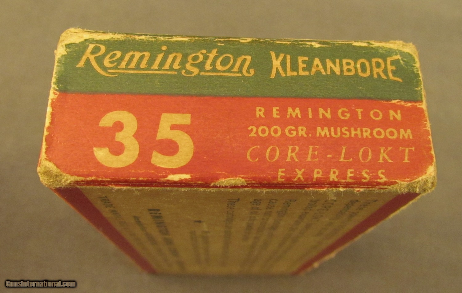 Description: One full 20 round box of Remington 35 Rem express loaded with 200 grain mushroom core-lokt bullets. Box shows light soiling and shelf wear with writing and label pulls. Ammo remains bright and clean. SOLD Manufacturer: Remington Model: Ammo Caliber Info: .35 Rem Gauge Info: .35 Rem |
