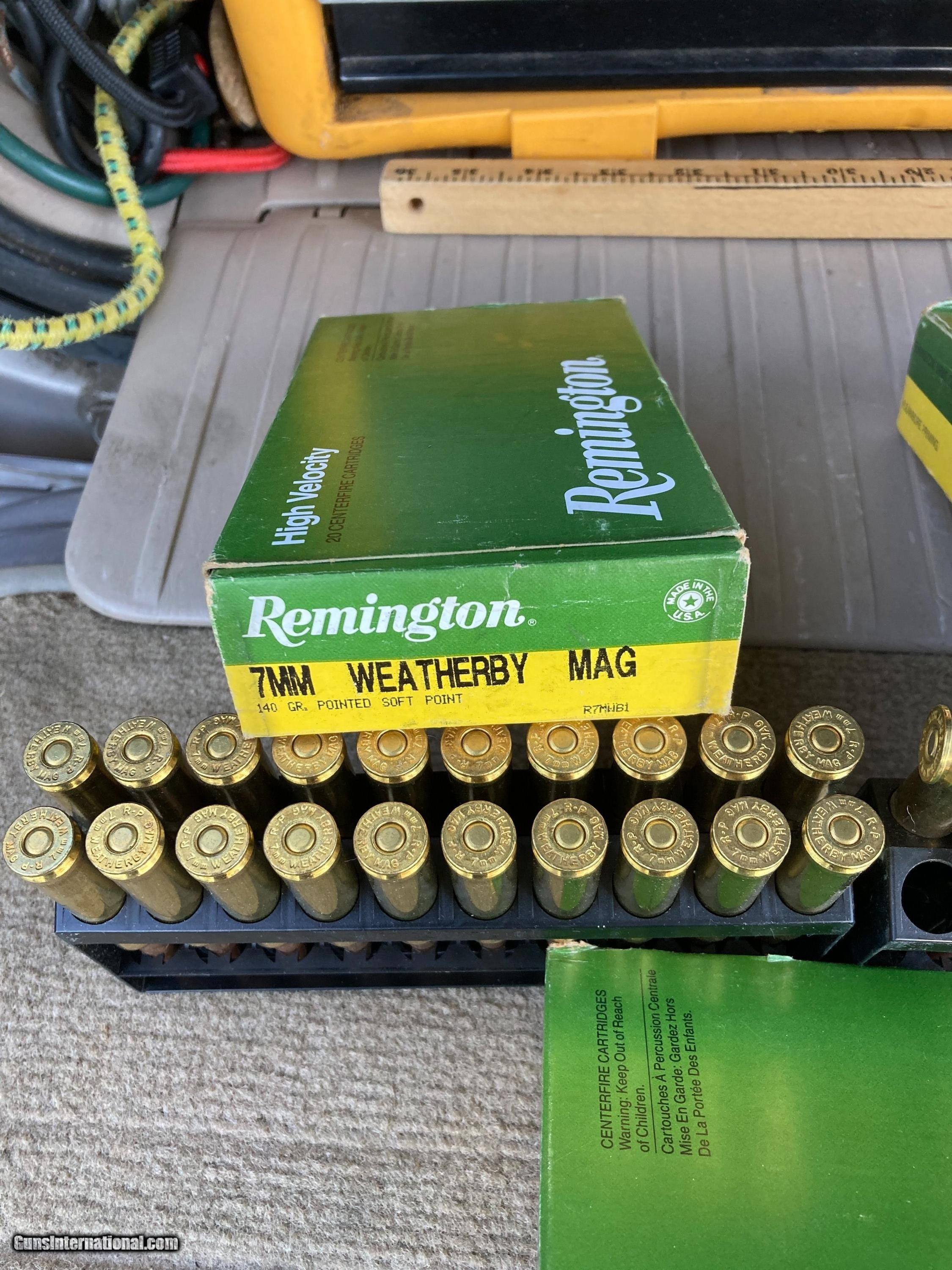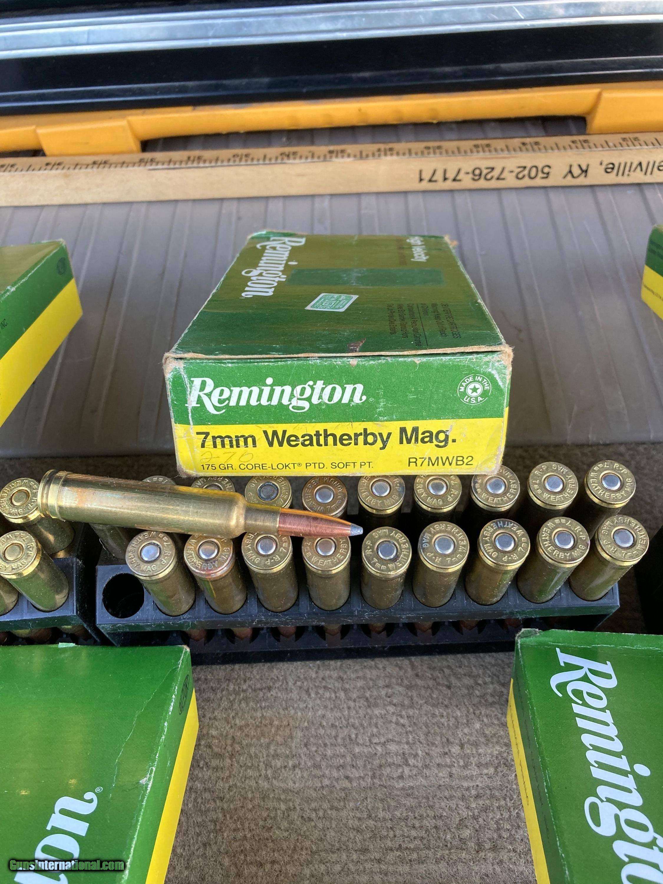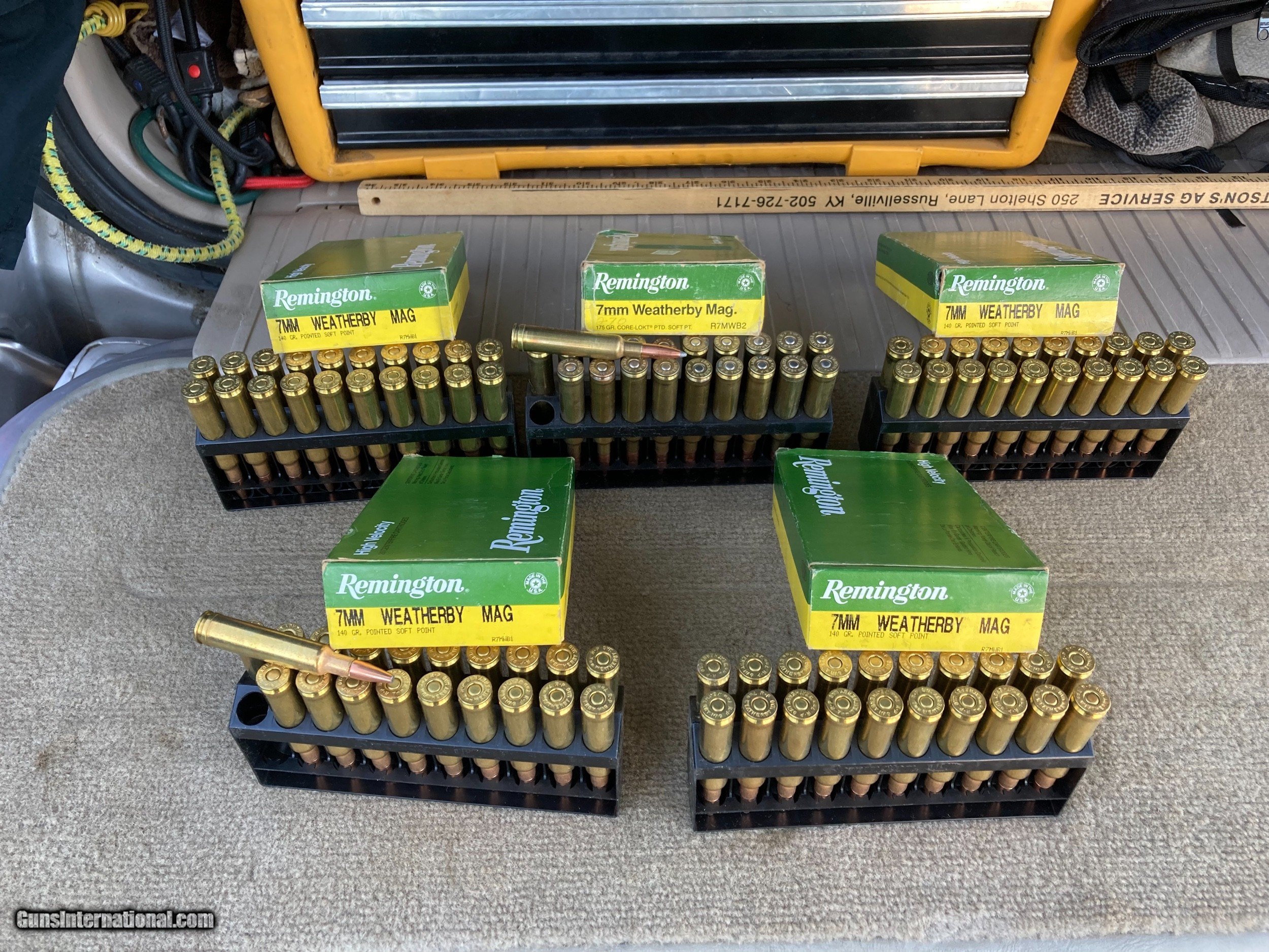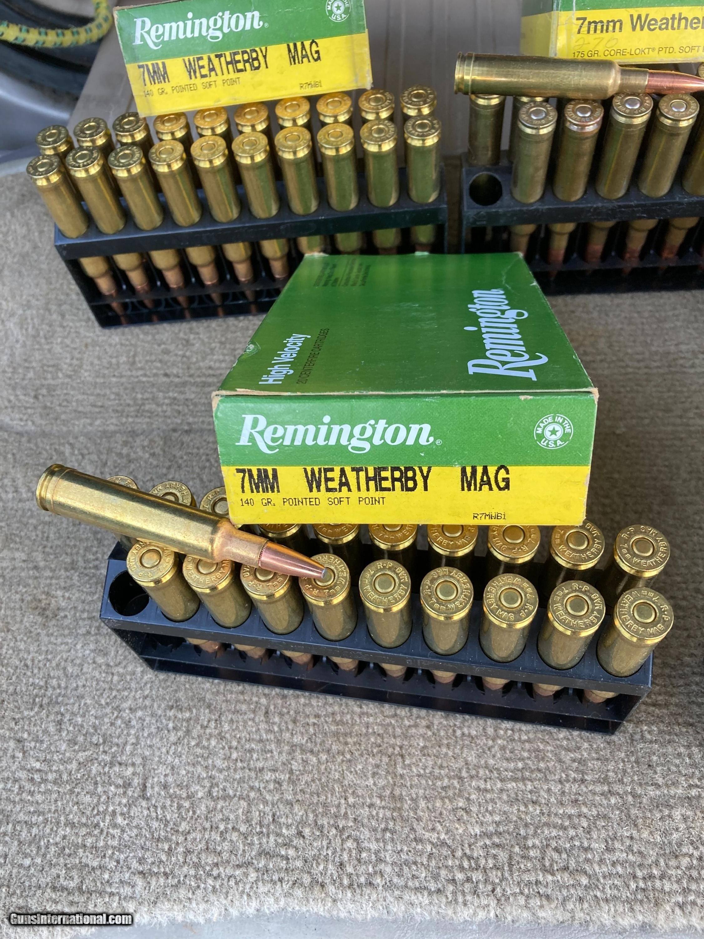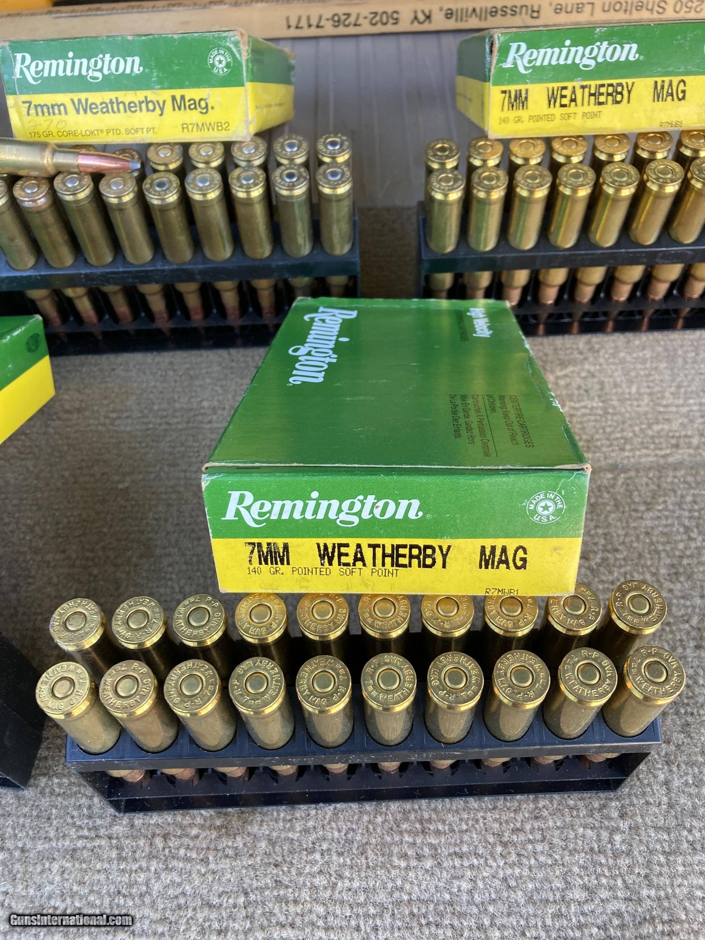 Description: 5 boxes of new Remington brand in 7mm Weatherby Mag. 4 boxes of 140 Grain pointed soft point 1 box of 175 Grain core-lokt pointed soft point. Selling all 5 boxes together. $265 with free shipping. SOLD Rifle Caliber: 7mm Weatherby Magnum |