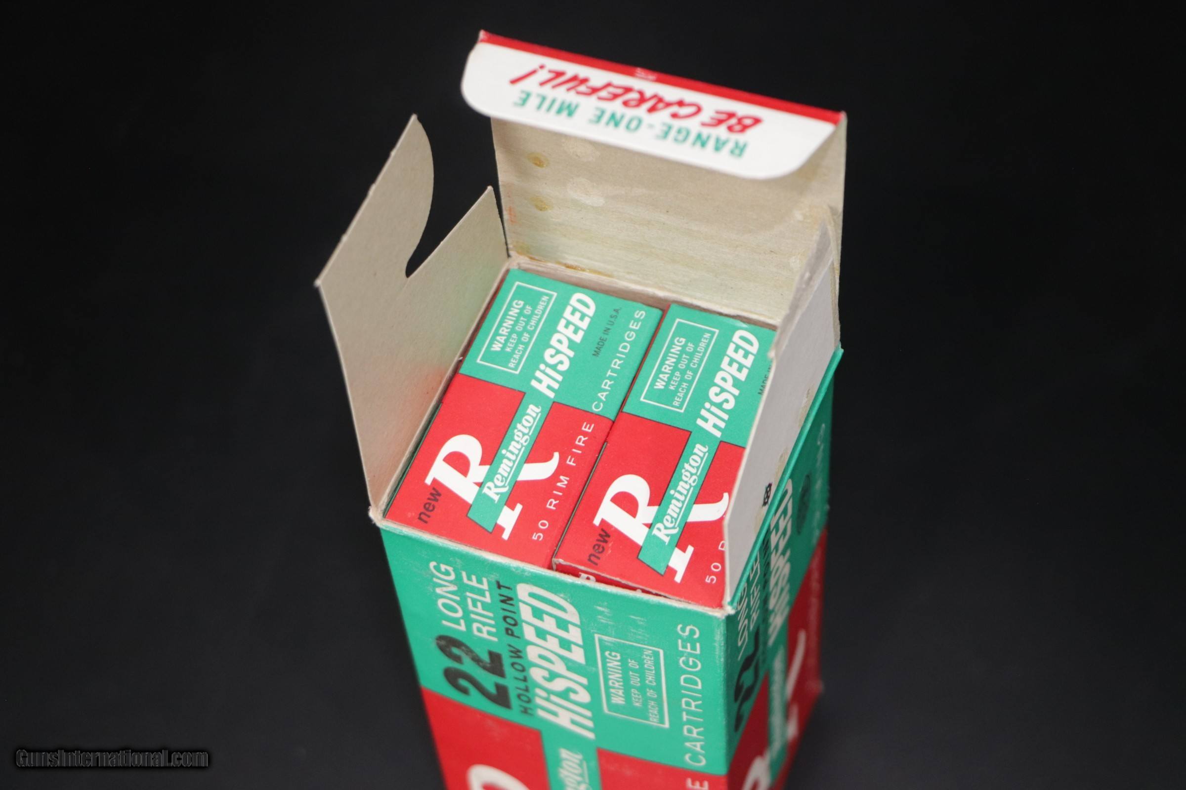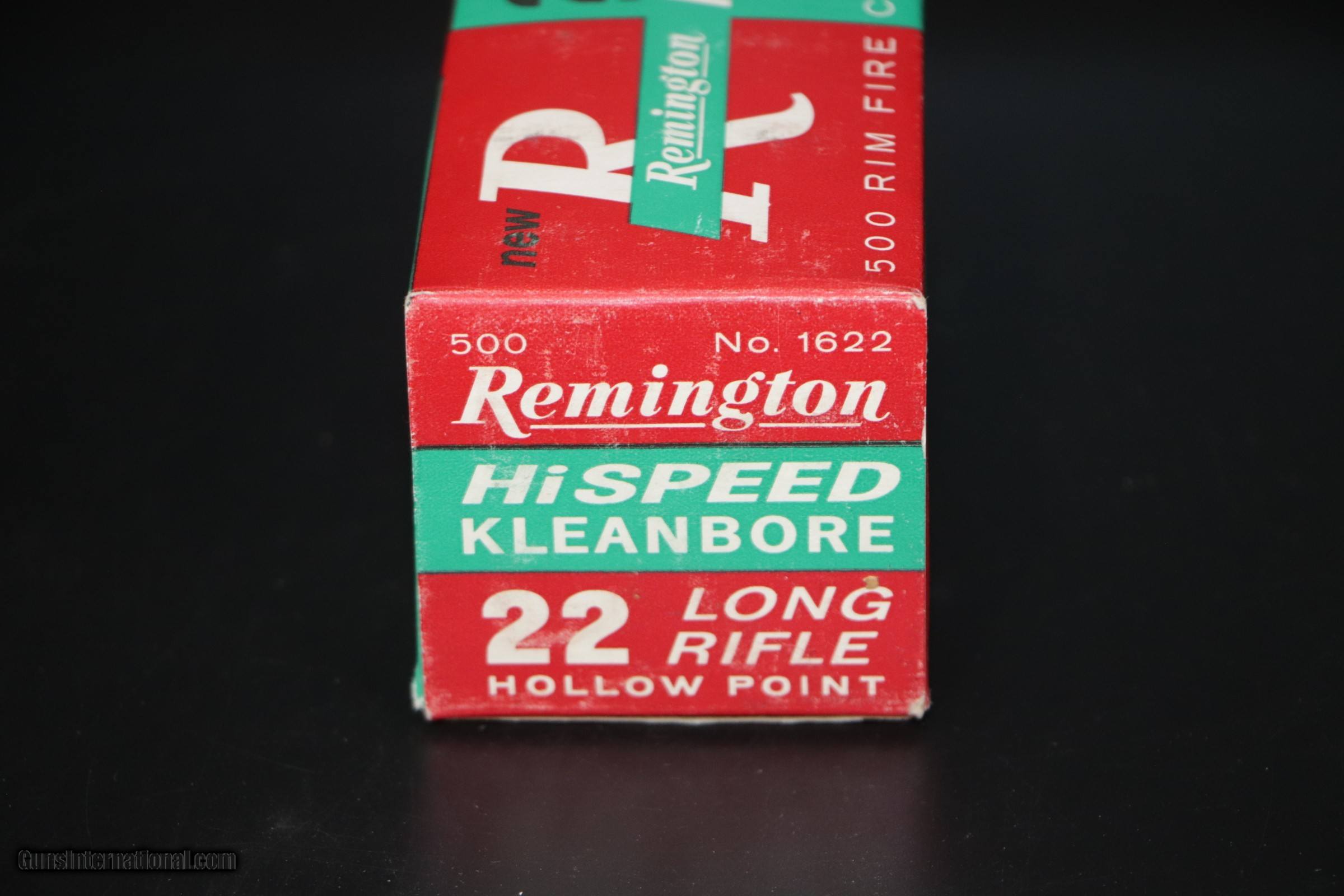 Description: Remington Hi Speed, 22 LR HP, 1962 Issue Red/Grn Box, Code 1622. Brick box is VG. Inside boxes and ammo are excellent. Add $15 S+H SOLD Rifle Caliber: .22 Long Rifle |