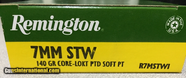 Description: Remington High Velocity Core-Lokt Ammunition 7mm STW 140 gr Core-Lokt PTD Soft PT Remington Product #R7MSTW1 Box of 20 cartridges SOLD |