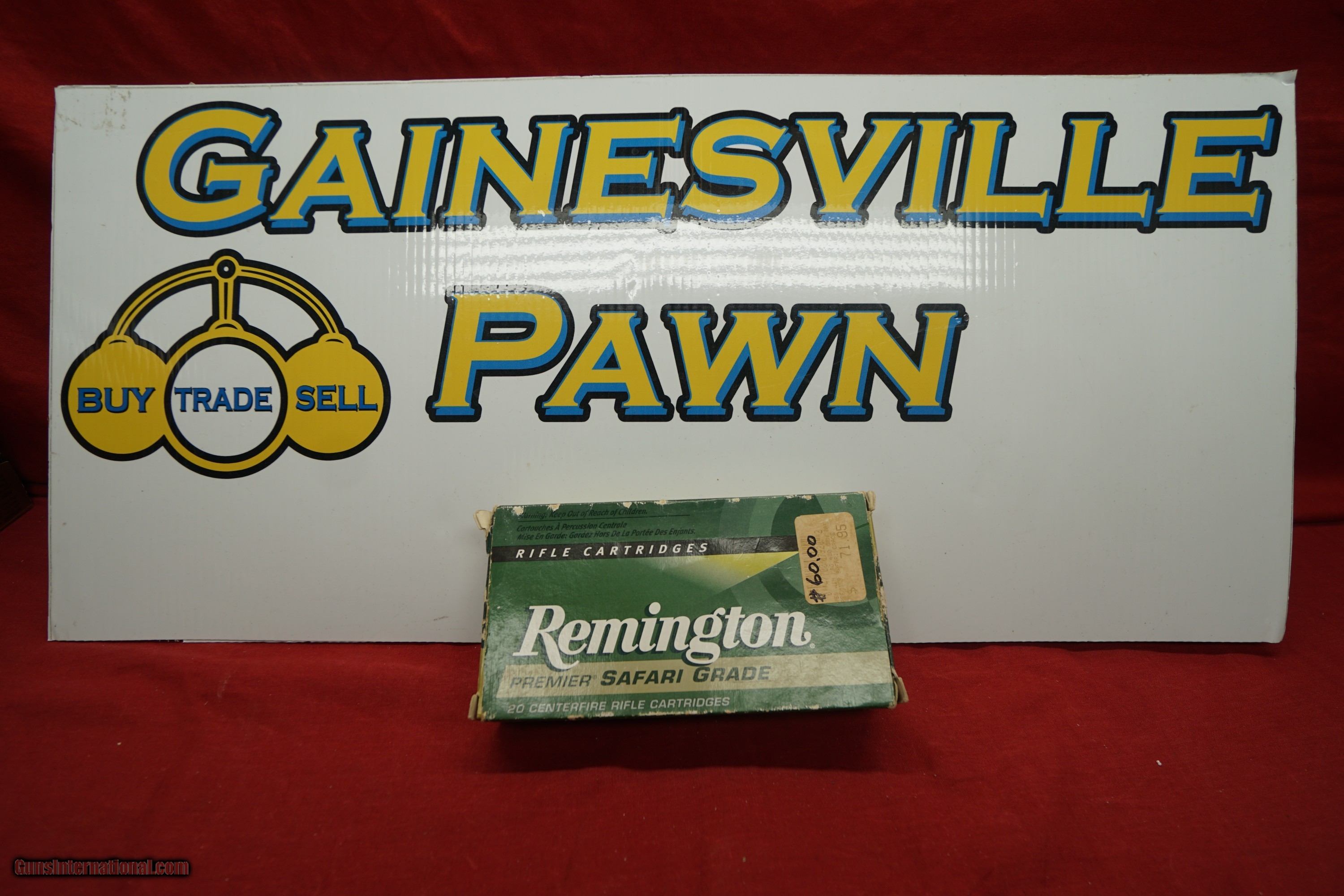 Description: Another great item from Gainesville Pawn! Up for sale is a box of Remington Safari Grade 458 Winchester Magnum. *Please be aware that all items are sold “AS IS”. Ask questions BEFORE buying. Feel free to call us at our store (352) 240-6452 or email us at Gainesvillepawn(at)gmail(.)com with ANY questions. We do not accept trades or offers through through Guns International We only entertain trades and offers through our store. $25 shipping and handling. Insurance extra. We only accept USPS money orders and major credit cards for payment. 3% convenience fee for credit cards. WE collect Florida state sales tax for in state sales. Please be aware that this item is for sale in our store as well as the occasional gun show so it may be sold there at any time. Please check us out at Gainesvillepawn.co for a full selection of our firearms and accessories SOLD Rifle Caliber: .458 Winchester Magnum |