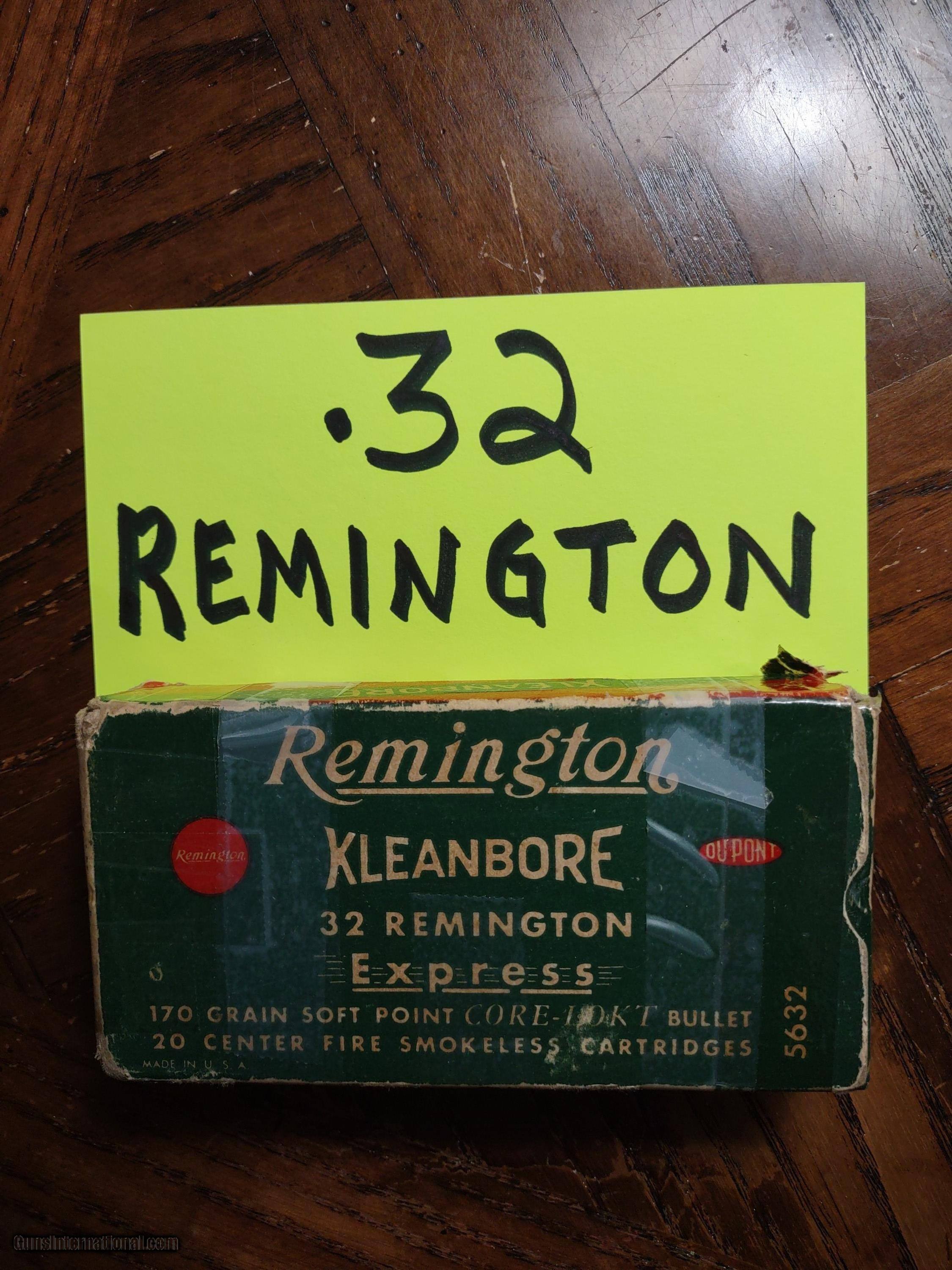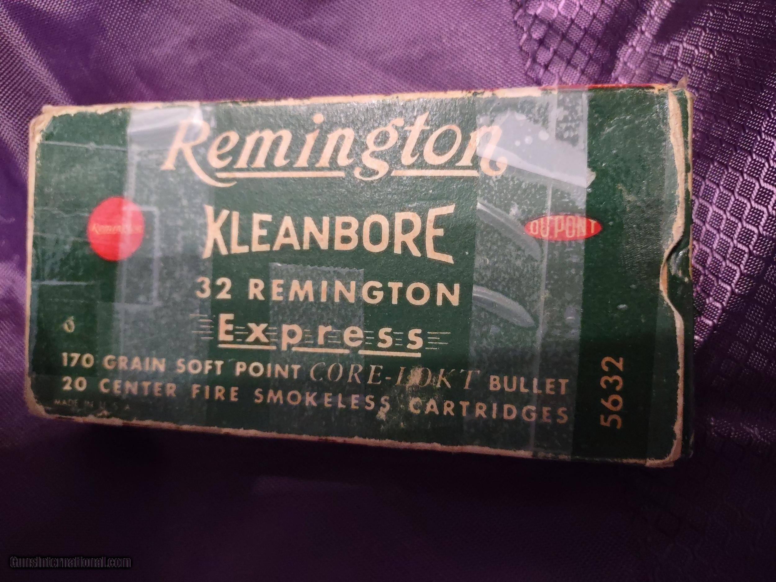 Description: REMINGTON KLEANBORE .32 Remington 170 grain soft point CORE-LOKT, 20 center-fire smokeless cartridges (4 of the 20 rounds are Super-X) all factory original in original factory box and brass cases. The price is $125 with free shipping to your home or workplace. Call or text me at 318-780-4242 if you are interested. SOLD |
