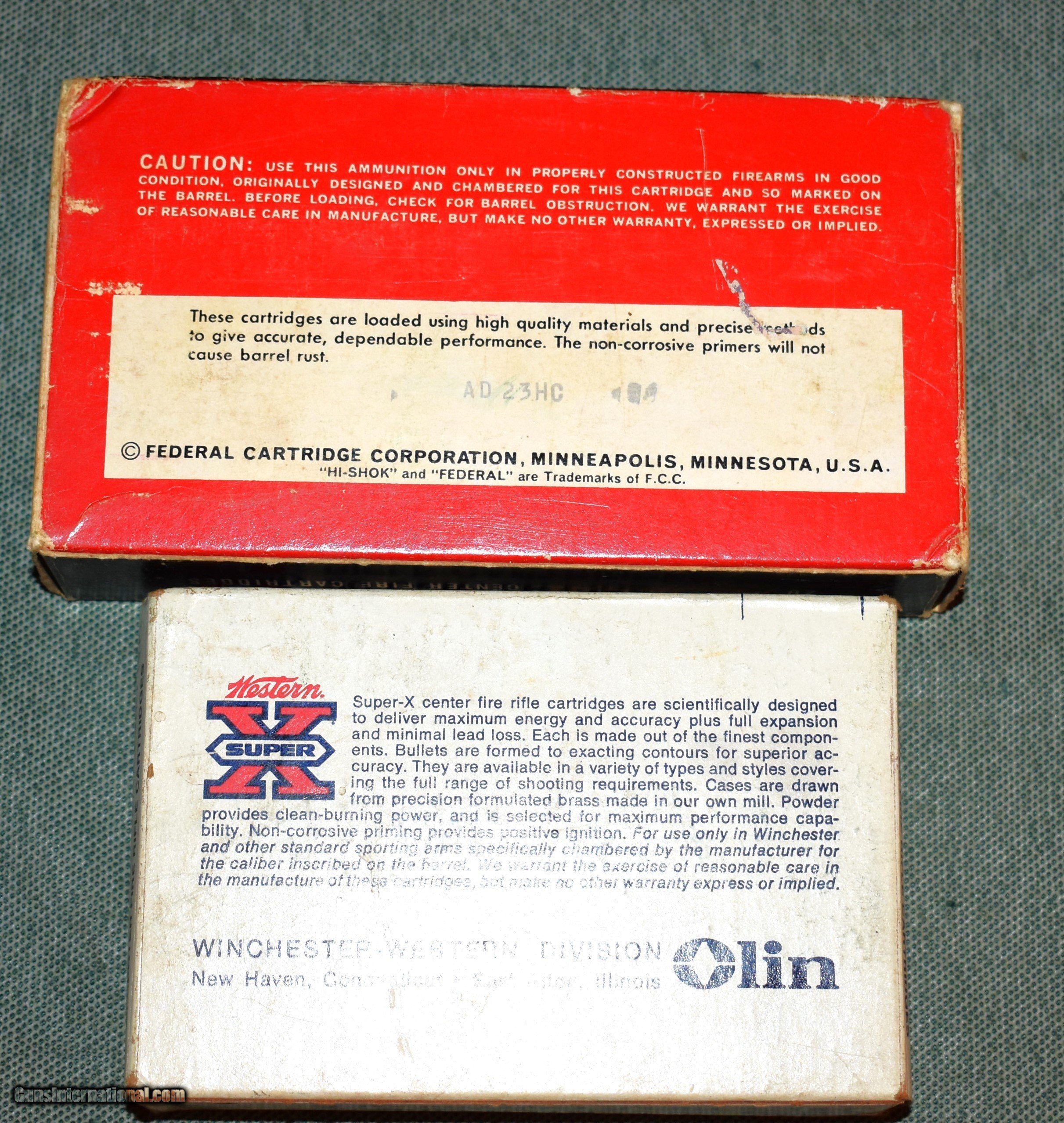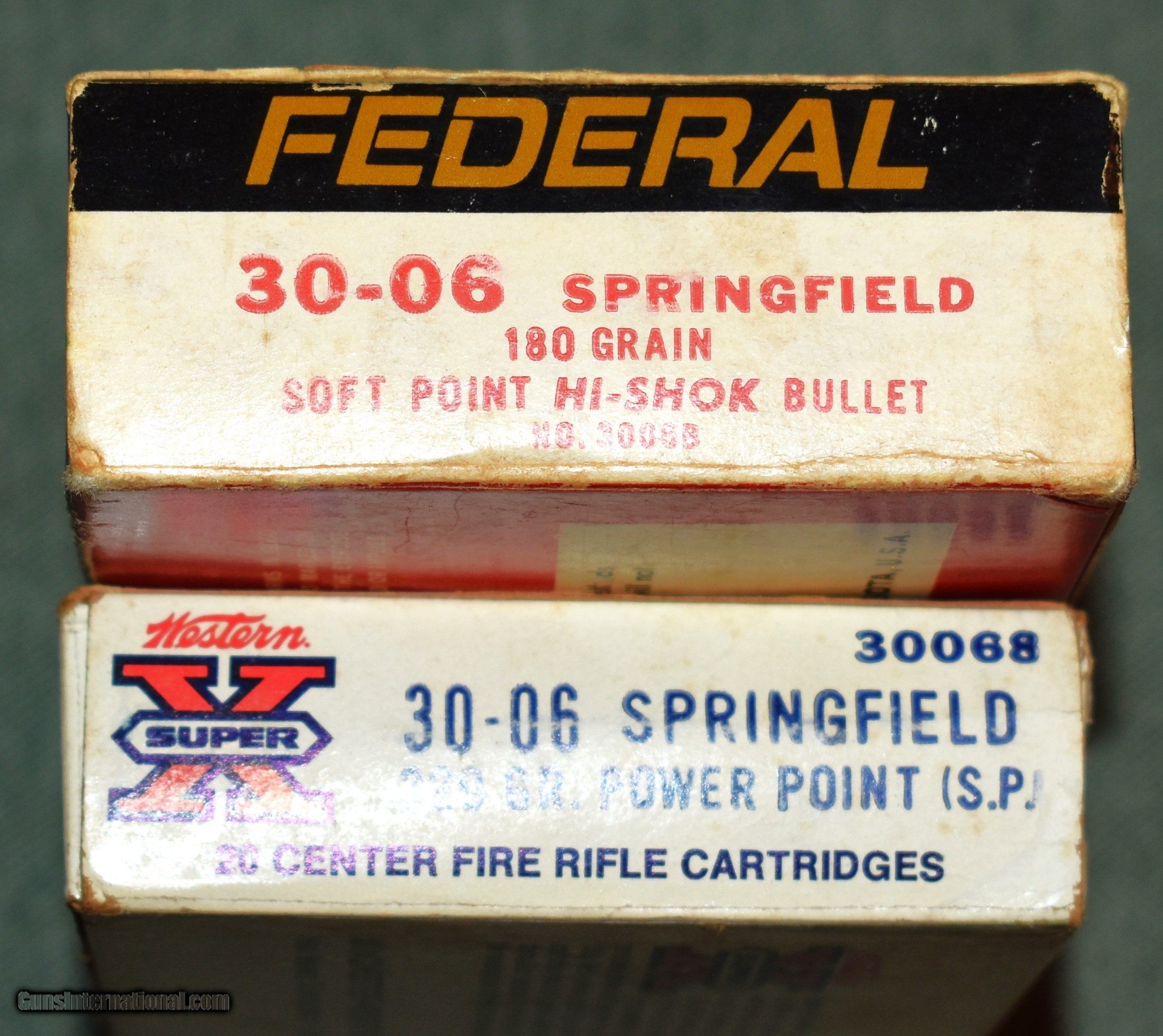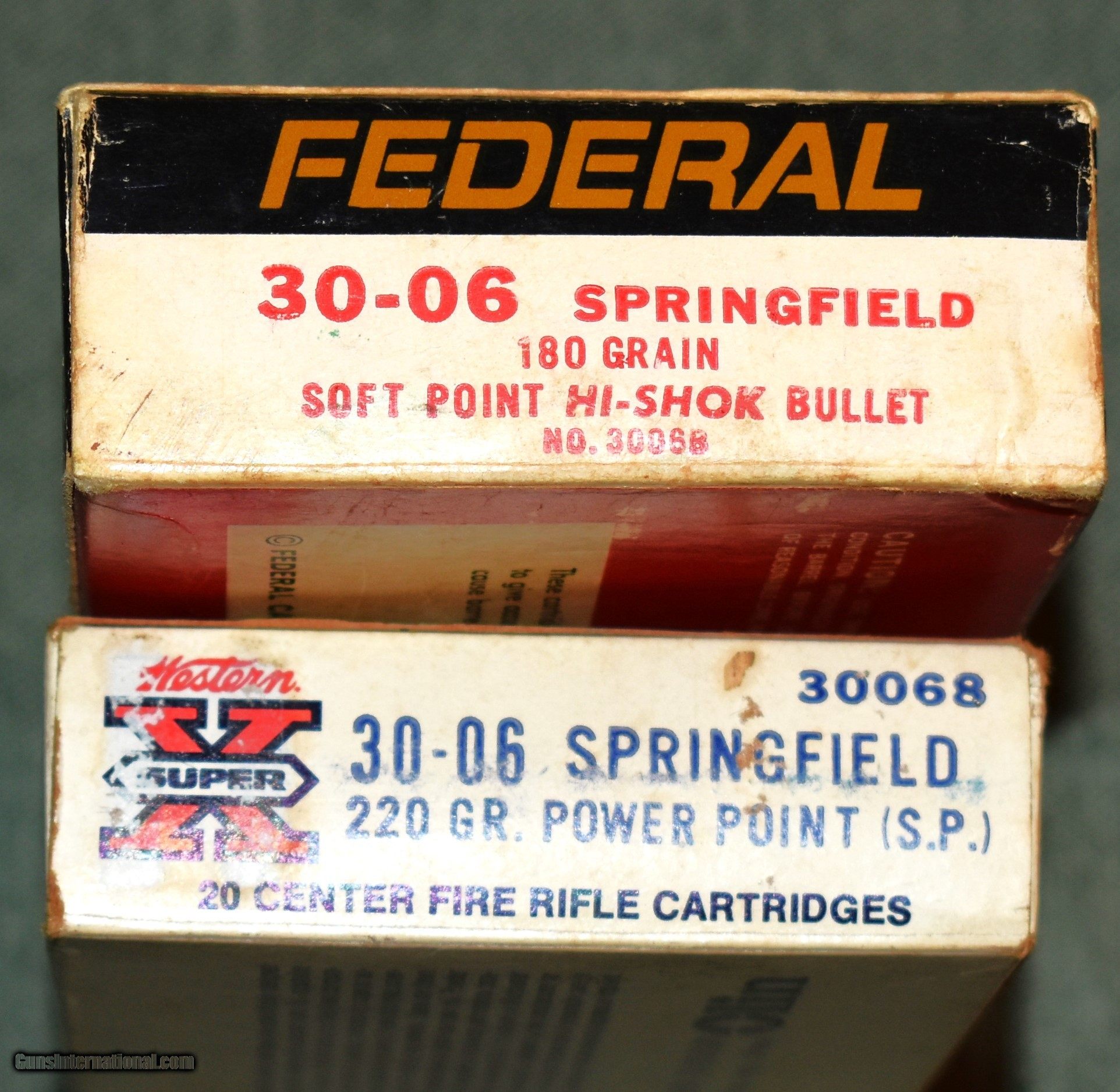 Description: Two full boxes of Winchester and Federal 30-06 Springfield ammunition. The Winchester 220 grain power point and the Federal is 180 grain soft point Hi-Shok. Both boxes are in good condition and the ammo is in exceeent condition. Price includes shipping. SOLD Rifle Caliber: .30-06 Springfield |