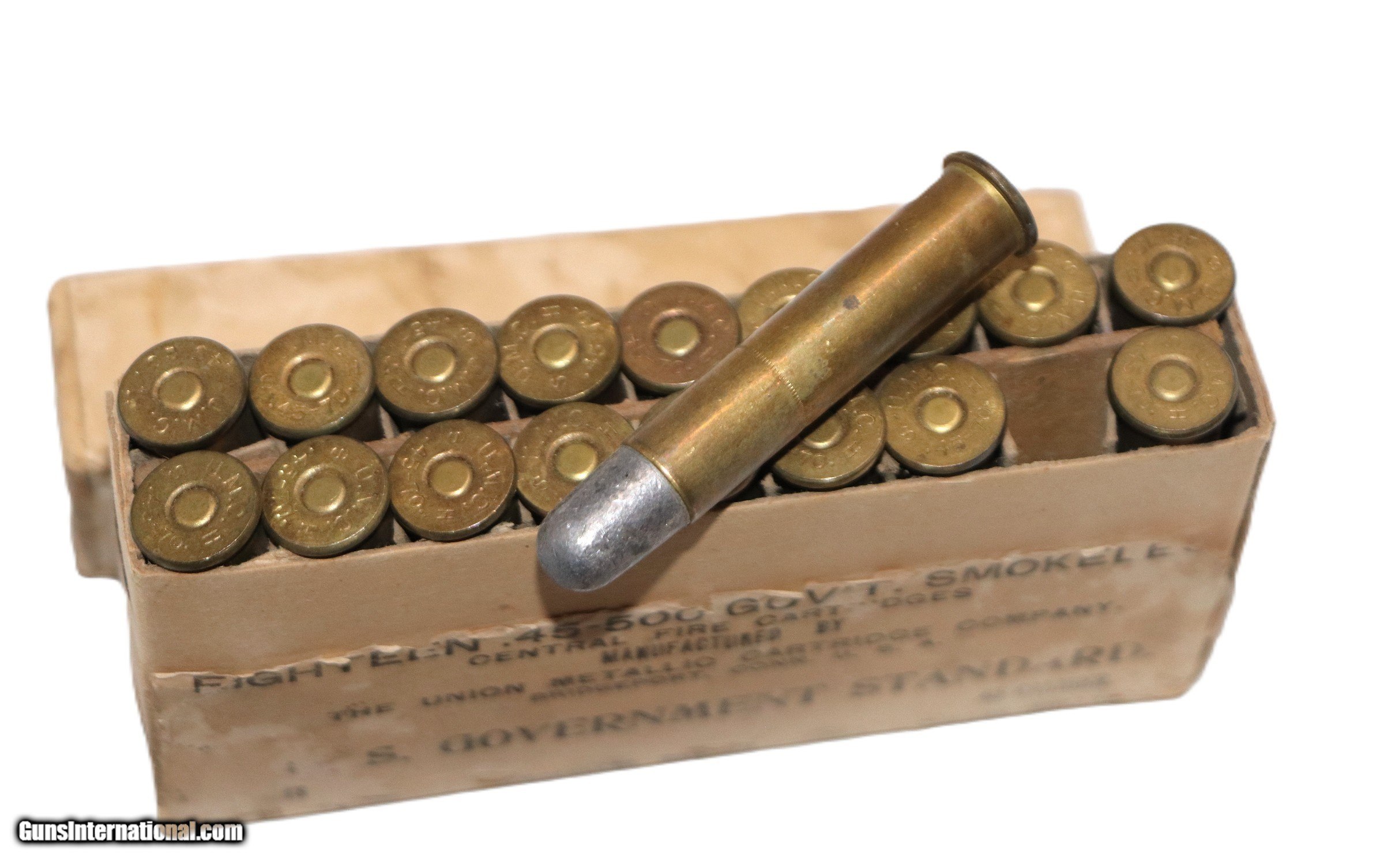 Description: UMC, .45-500 (45-70), US Govt Std, Central Fire, Full Box of 18 Rds Rifle Caliber: .45-70 Government Price: $80.00 Shipping: $17.50 Contact Seller |