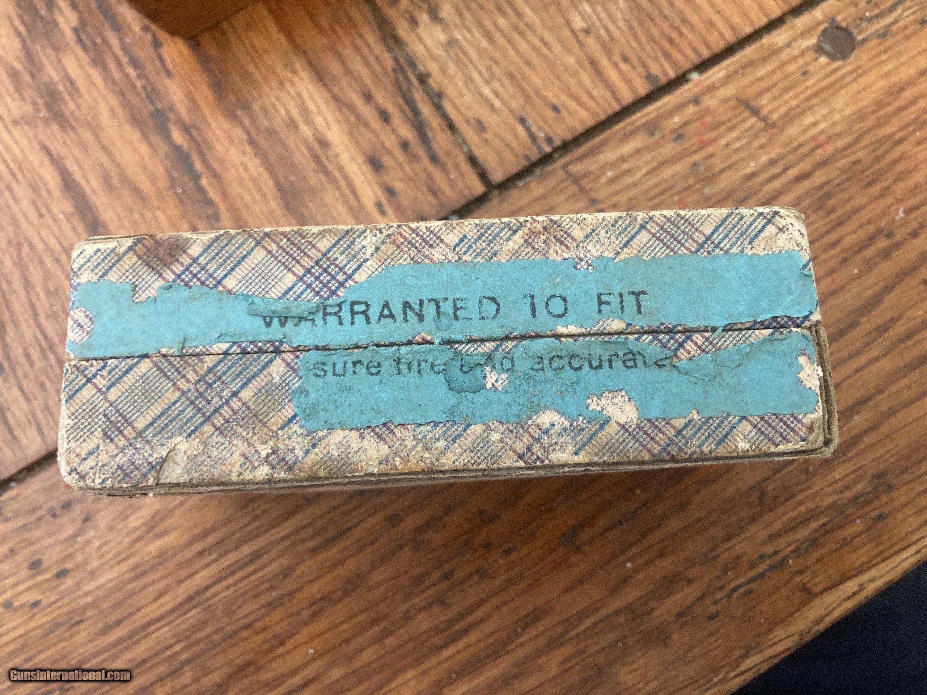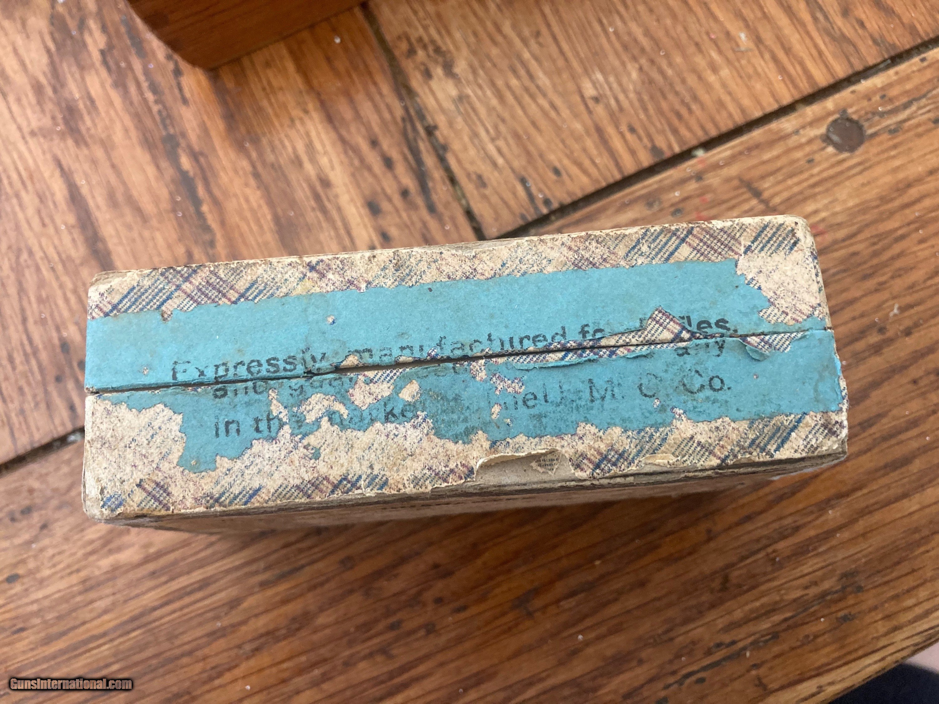 Description: Box of 33 Union Metallic Cartridge Co. 44 Rimfire Long cartridges. Ideal for your Henry Rifle, 1866 Winchester, or Colt Single Action rimfire collectors. The box is in fair condition, it's missing one side (see pic). There are 33 cartridges. Please feel free to ask questions. SOLD Rifle Caliber: .44 Henry |