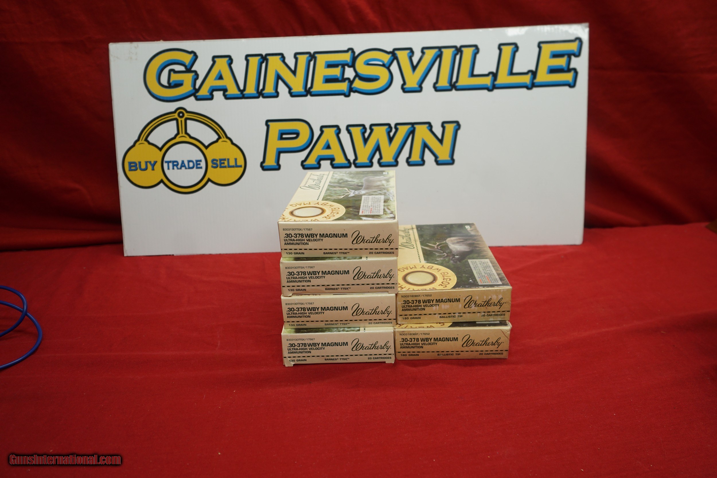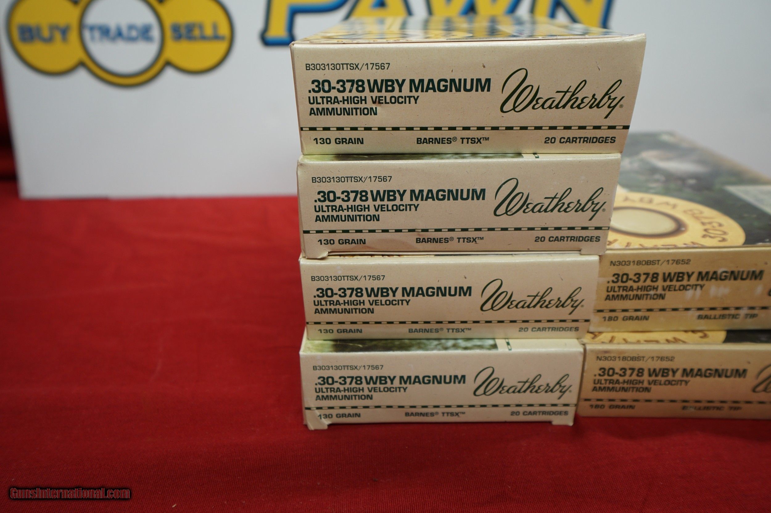 Description: Another great item from Gainesville Pawn! Up for sale is Weatherby .30-378 Ultra High Velocity Ammo. Six boxes total. Four 130 gr Barnes TTSX and Two boxes 180 grain Ballistic tip. *Please be aware that all items are sold “AS IS”. Ask questions BEFORE placing a bid. Feel free to call me (352) 339-4780 or email us at Gainesvillepawngmail with ANY questions. We do not accept trades or offers through through Guns International We only entertain trades and offers through our store. $25 shipping and handling. Insurance extra. We only accept USPS money orders and major credit cards for payment. 3% convenience fee for credit cards. WE collect Florida state sales tax for in state sales. Please be aware that this item is for sale in our store as well as the occasional gun show so it may be sold there at any time. We will not ship the item until you have your dealer/receiving store email us a signed copy of their FFL to gainesvillepawngmail. If you choose the Buy It Now option please call me (352) 339-4780 to finish the transaction. SOLD Rifle Caliber: .30-378 Weatherby Magnum |