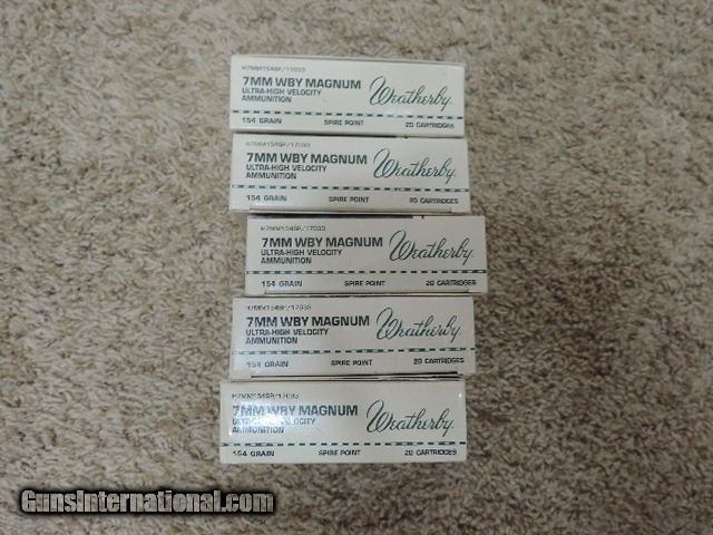 Description: 154 GRAIN, SPIRE POINT, 20 RD BOX, FIVE BOXES 5 , $59.00 / BOX TOTAL = $295.00 FREE SHIPPING NO CREDIT CARD FEES SOLD Rifle Caliber: 7mm Weatherby Magnum |