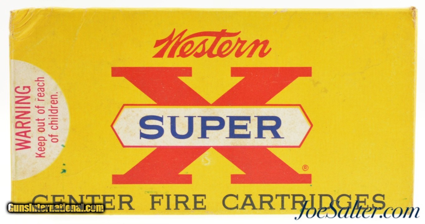 Description: This is a full box of 20 rounds of Western 225 Win. 55gr PTD. Soft Point, W-W Super-X ammunition. The box is in excellent condition with nice colors, light age soiling, edges and corners excellent with the exception of an impact on one corner. The ammunition in excellent also. Price: $99.00 Contact Seller |
