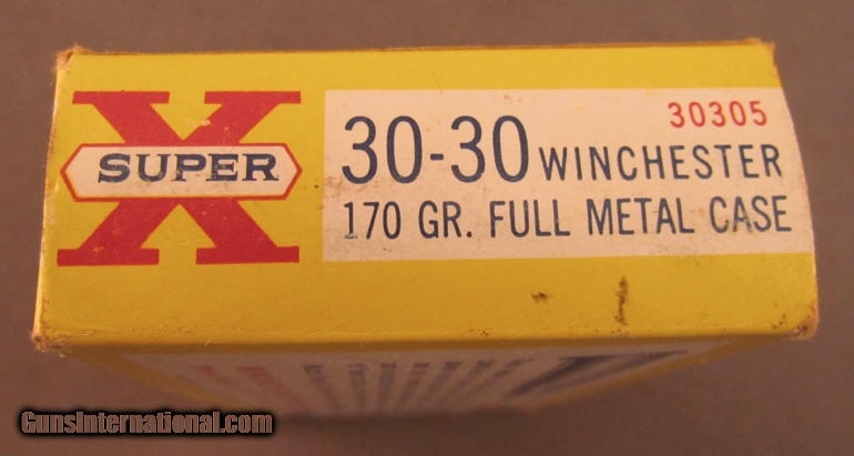 Description: This full 20 round box is loaded with 170 grain full metal case (jacket) bullets. Box shows light shelf wear and light soiling. Ammo remains bright and clean. Full metal jacketed 30-30 loadings are not common. SOLD Manufacturer: Western Model: Ammo Caliber Info: .30-30 Gauge Info: .30-30 |