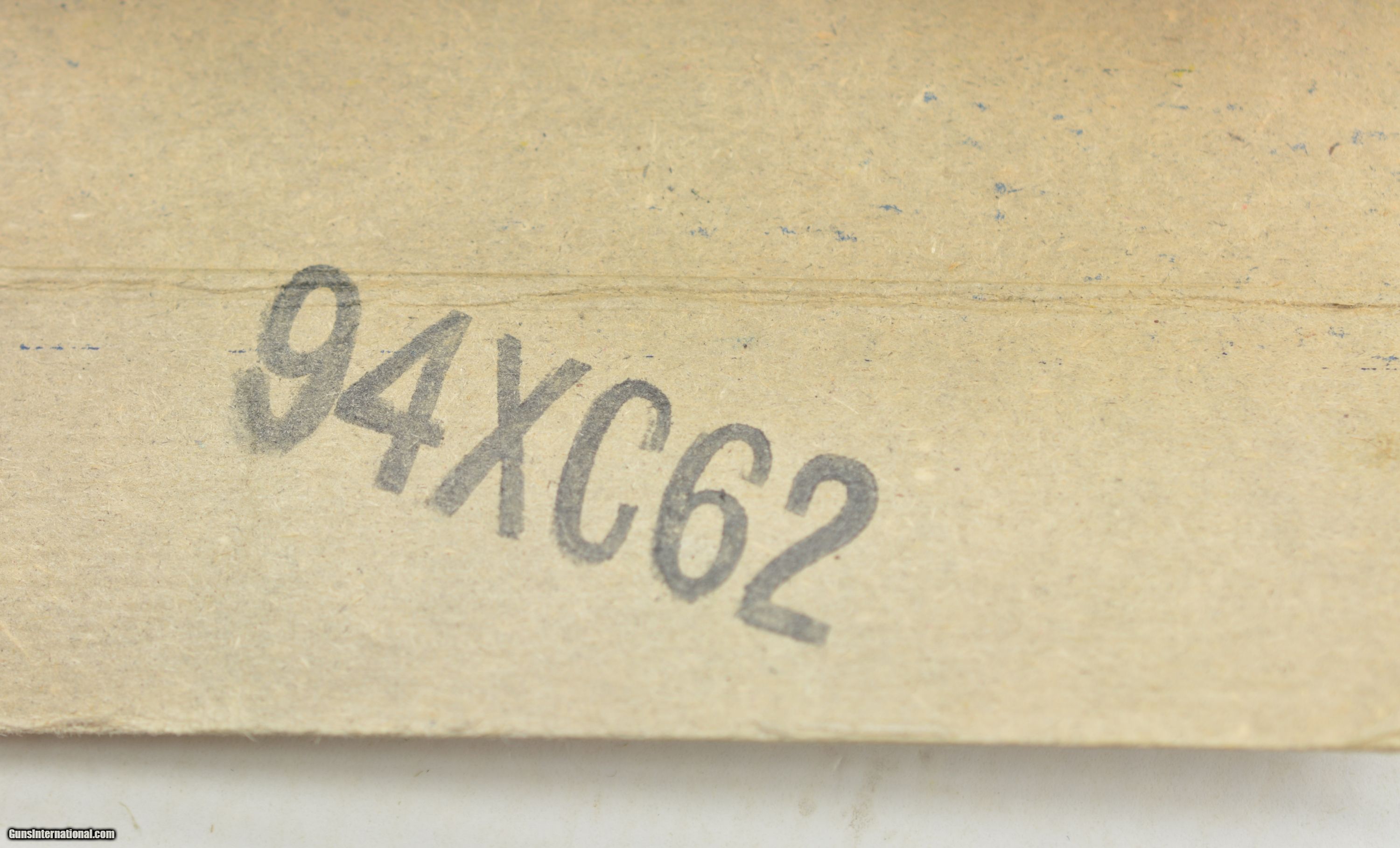 Description: This is a full box of .300 H & H Magnum in the iconic, desirable "Bear" box. Representing one of the largest caliber offerings this colorful box has crisp, excellent graphics and will look great on display. The box is sound with minor corner, flap and handling wear. The box is full with correct rounds that are in excellent condition with several showing light tarnish on the heads. SOLD Manufacturer: Western Caliber Info: 300 H & H Mag Gauge Info: 300 H & H Mag |