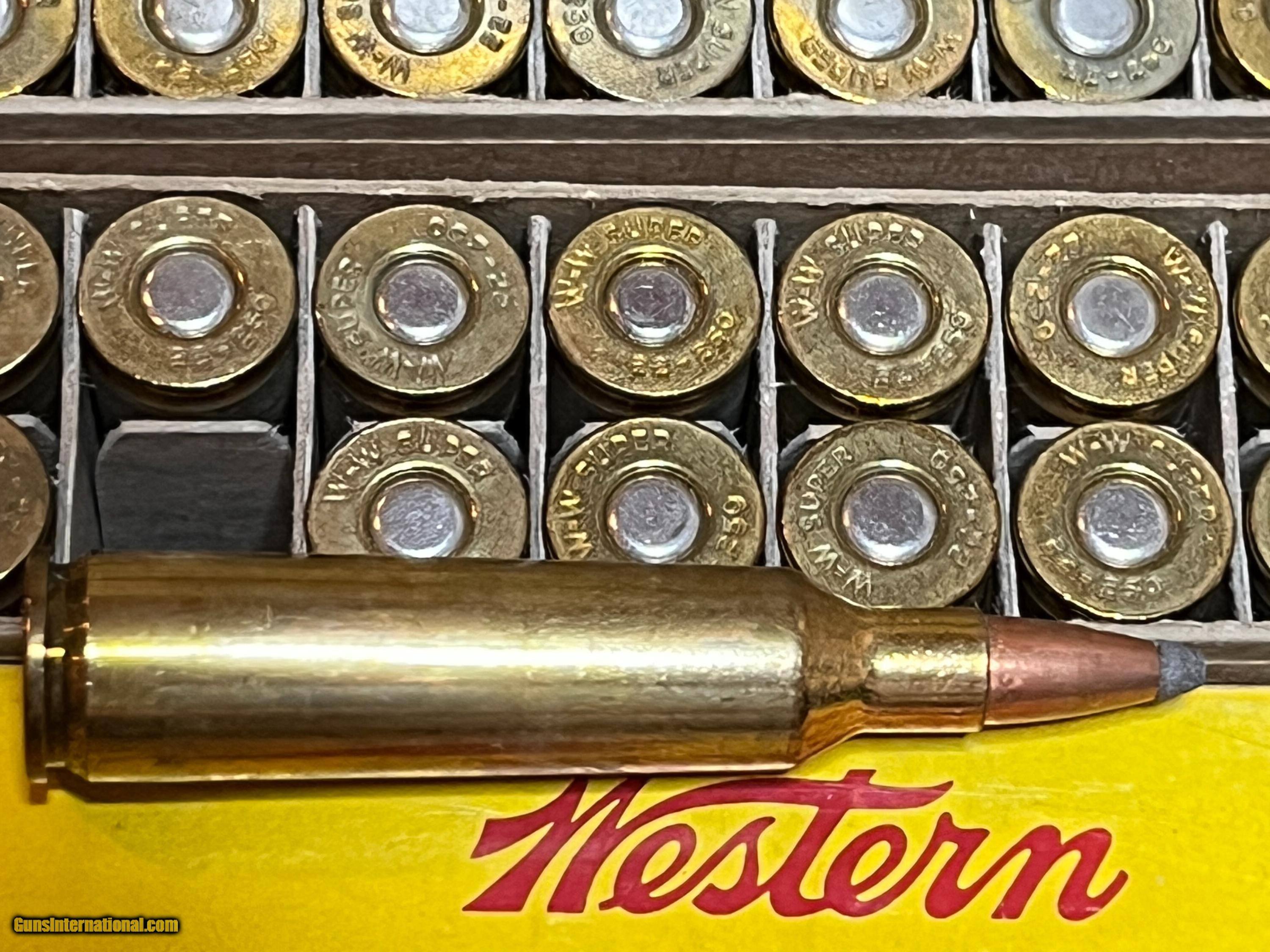 Description: 2 full and correct boxes of 22-250 55 grain SP ammo. Boxes are nice and crisp. 4 boxes of once fired brass. Again boxes are very nice. SOLD Rifle Caliber: .22-250 Remington |