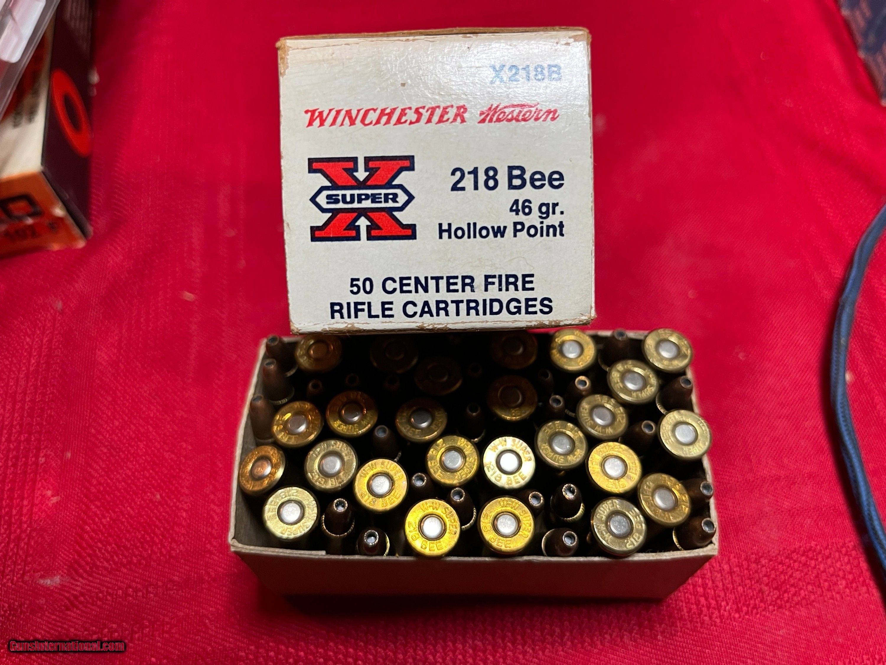Description: Nice crisp box 218 Bee 46 grain HP ammo. Code X218B SOLD Rifle Caliber: .218 Bee |