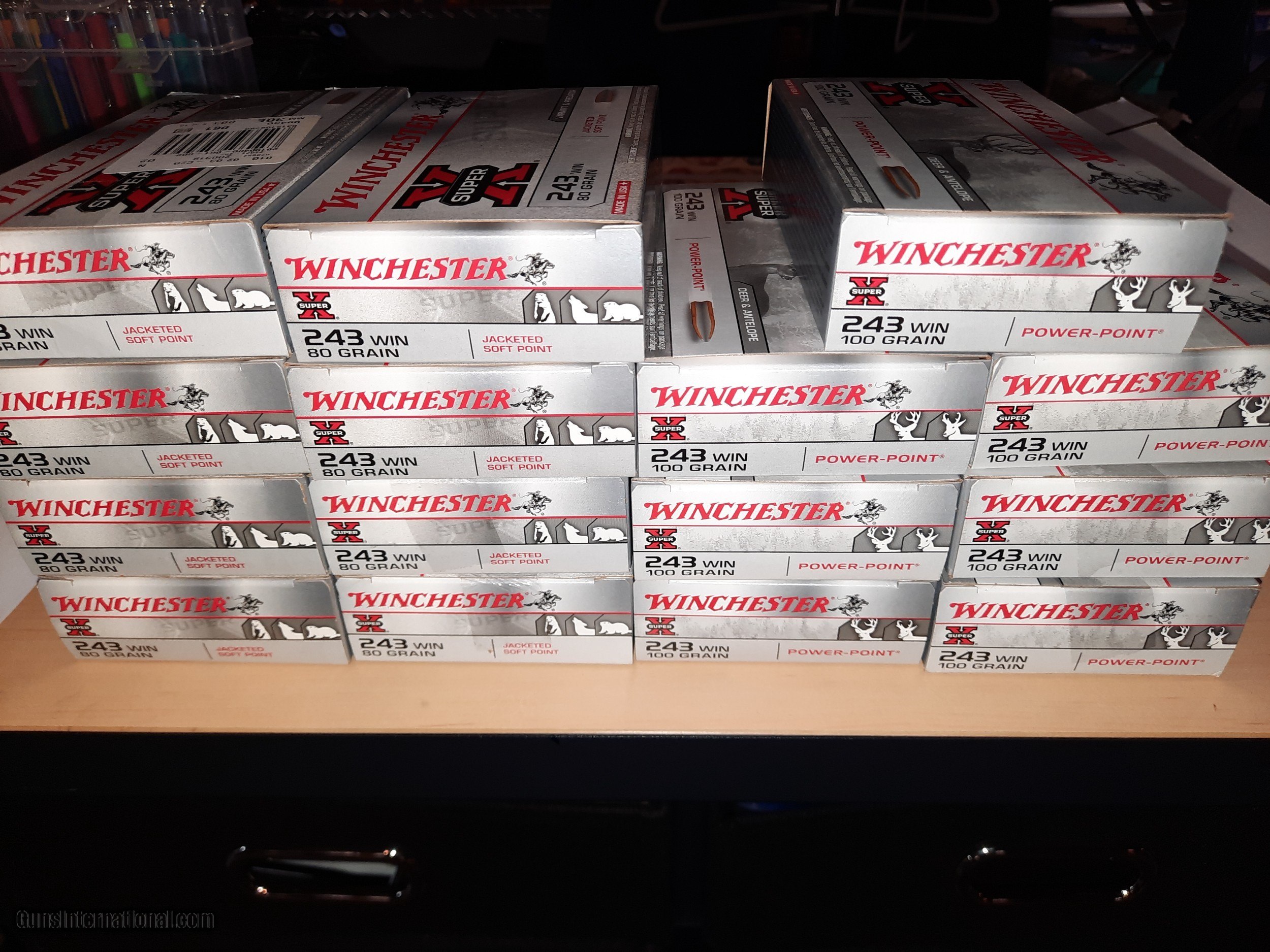 Description: Winchester 243 100gr PowerPoint, 80gr Jacketed Soft Point, $25 per box plus calculated shipping SOLD Rifle Caliber: .243 Winchester |