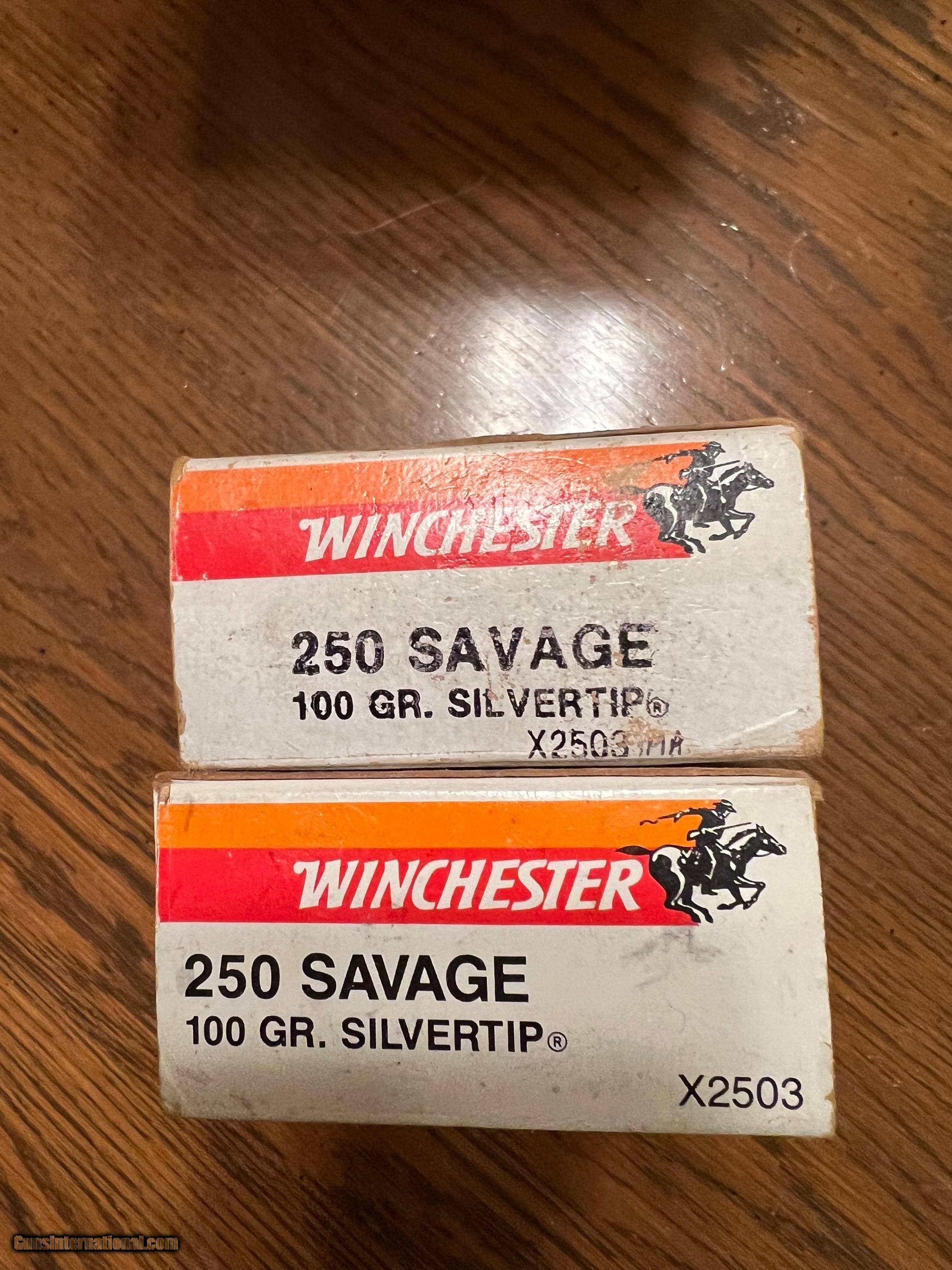 Description: WINCHESTER. 250. Savage. Silver. Tip. Ammo. Two. Boxes. 40. Rounds. Total. New. In box. Cashier check. or. USPS money. Order. Shipping 10.00. Thank you. NO. SALE. WERE. PROHIBITED SOLD |
