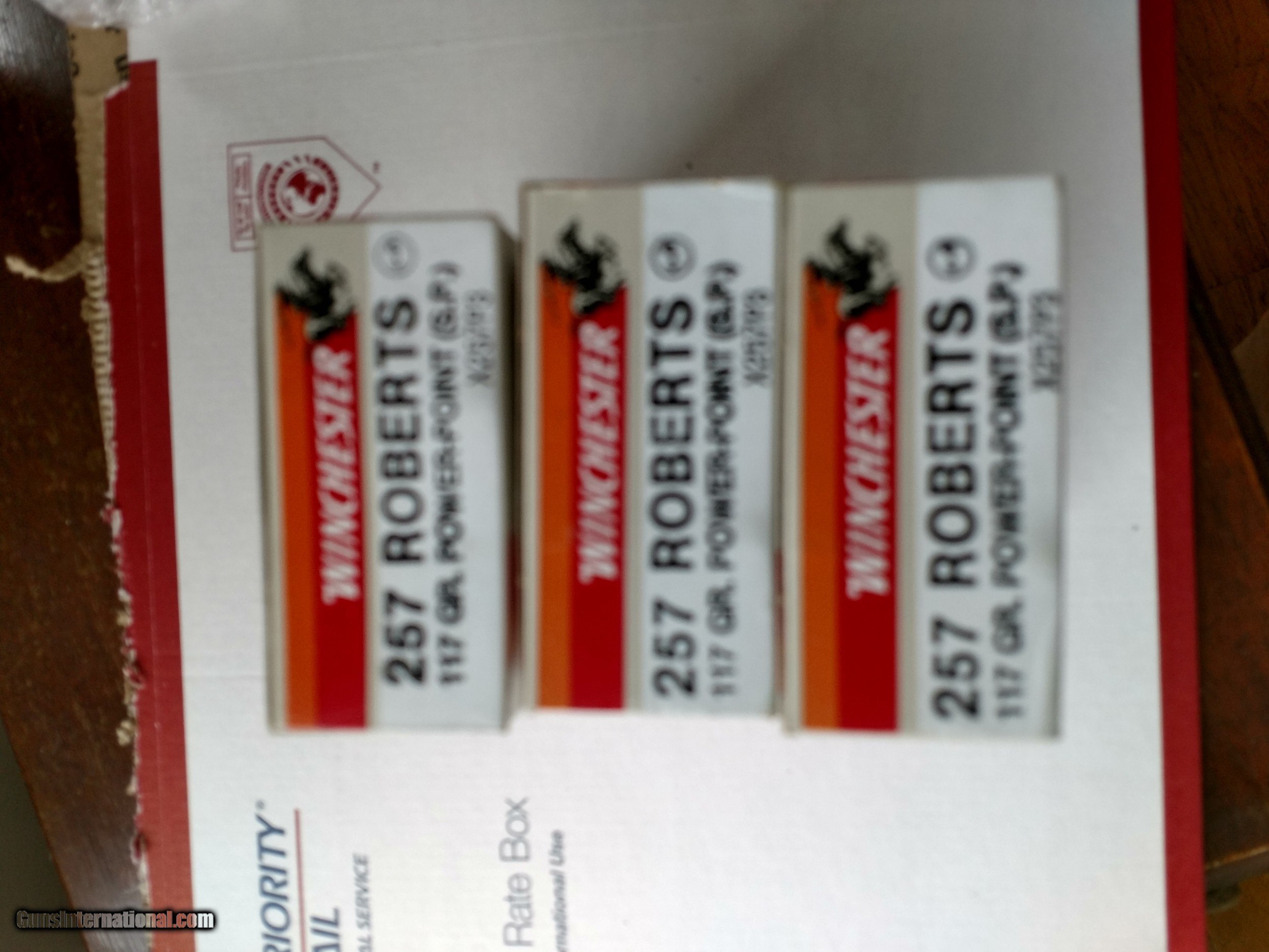 Description: 3 factory fresh boxes of Winchester brand .257 roberts 117 grain +P ammo.these 3 boxes will ship FREE to your front door SOLD |