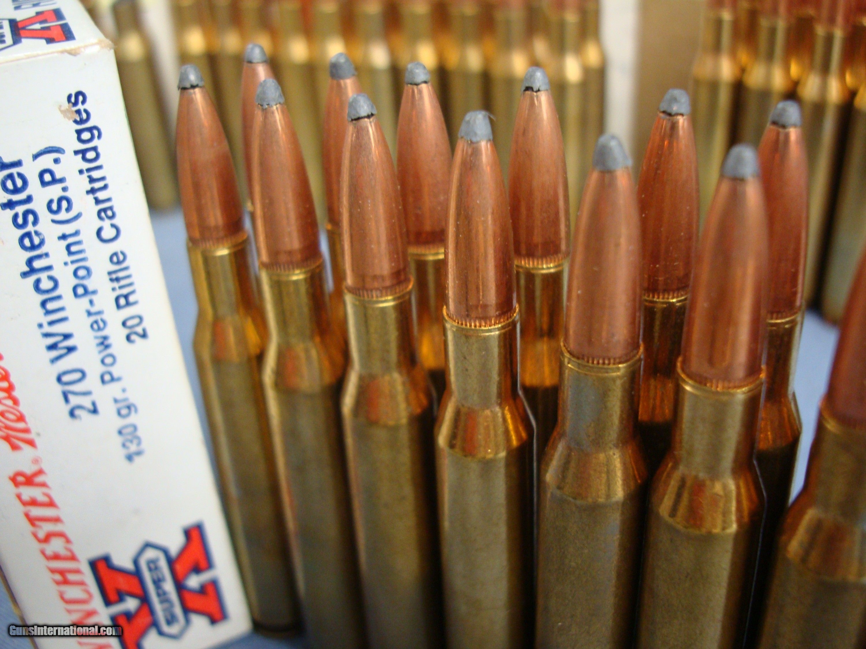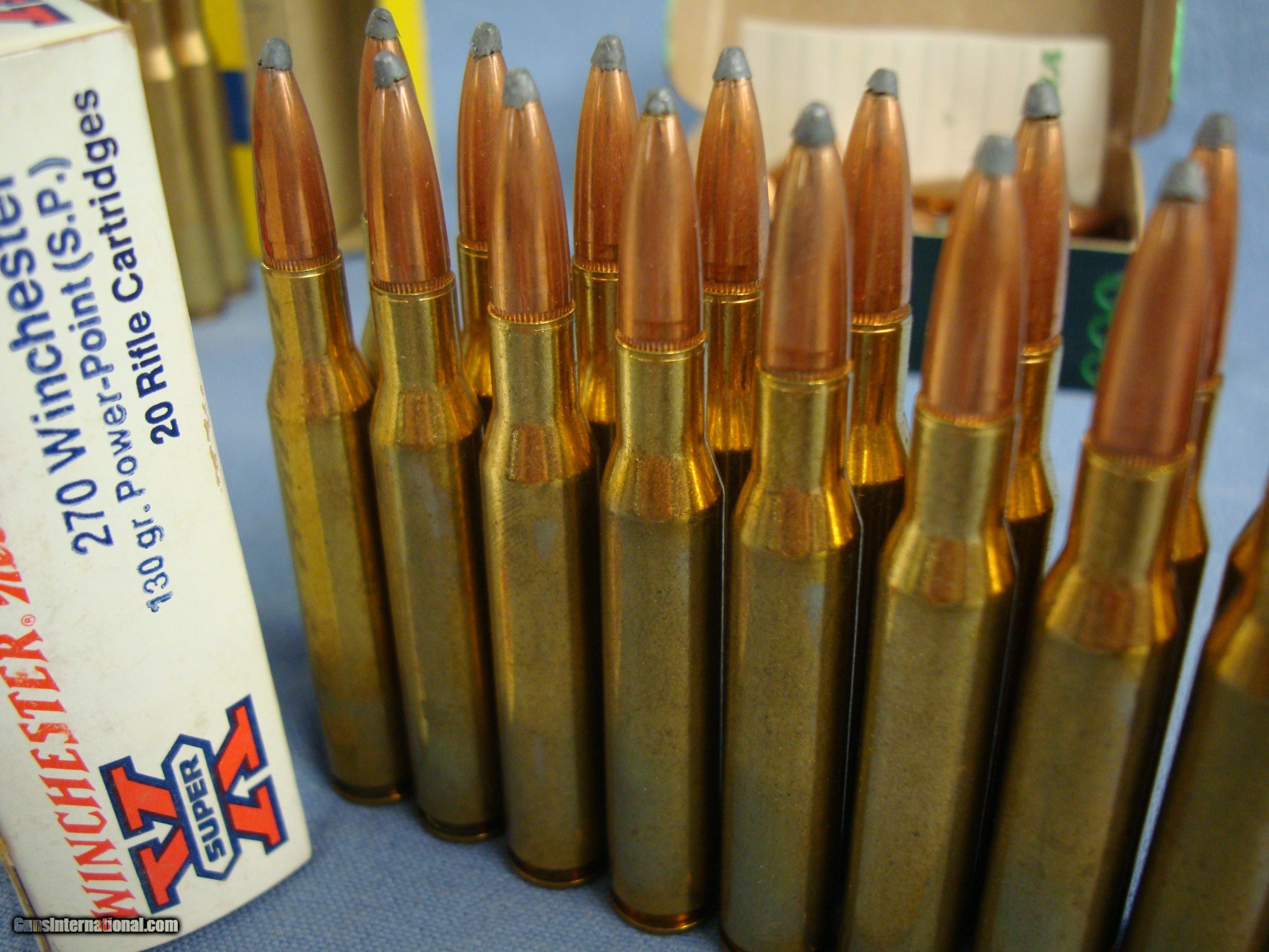 Winchester 270 ammo, 130 gr Power Point(S.P.) 97 factory rounds + 20 new cases + Sierra 130 bullets. Free shipping.