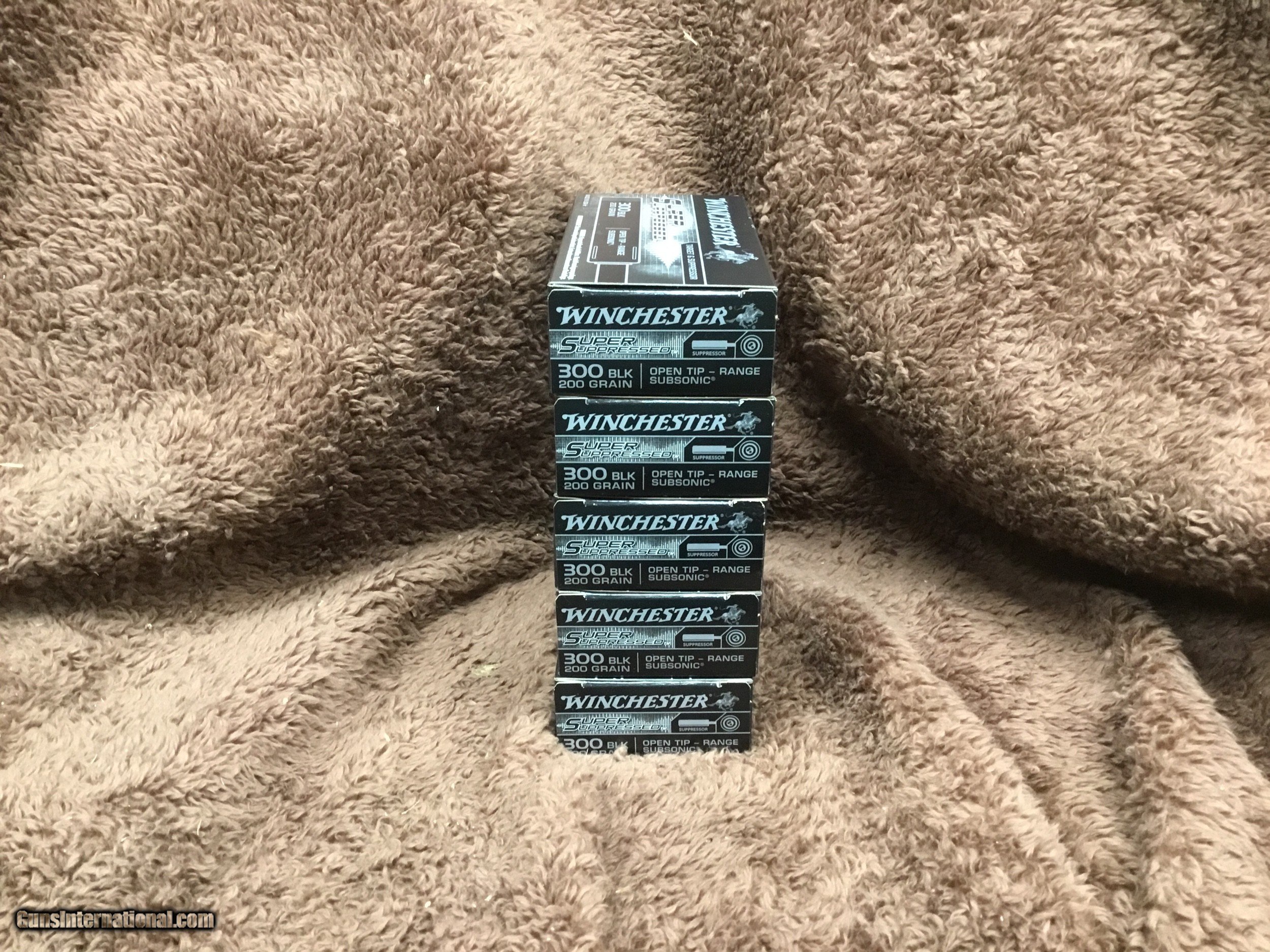 Description: Winchester 300 AAC Blackout 200gr. Open Tip - Range. Subsonic 5 boxes.......100rds $149.00 $21.00 Thank you for looking at our items. If it is listed on the site, we still have it in the shop. If you wish to buy, hit buy it now and call the shop to pay. Ask for Bree....... (803) 874-1060. If you are WEST of the Mississippi add $10 more to shipping cost. NO sales to California EXCEPT under certain conditions. If you are in California, please DO NOT push buy it now and just CALL the shop first. ...... (803) 874-1060 NO INTERNATIONAL SALES. SOLD Rifle Caliber: .300 AAC Blackout |