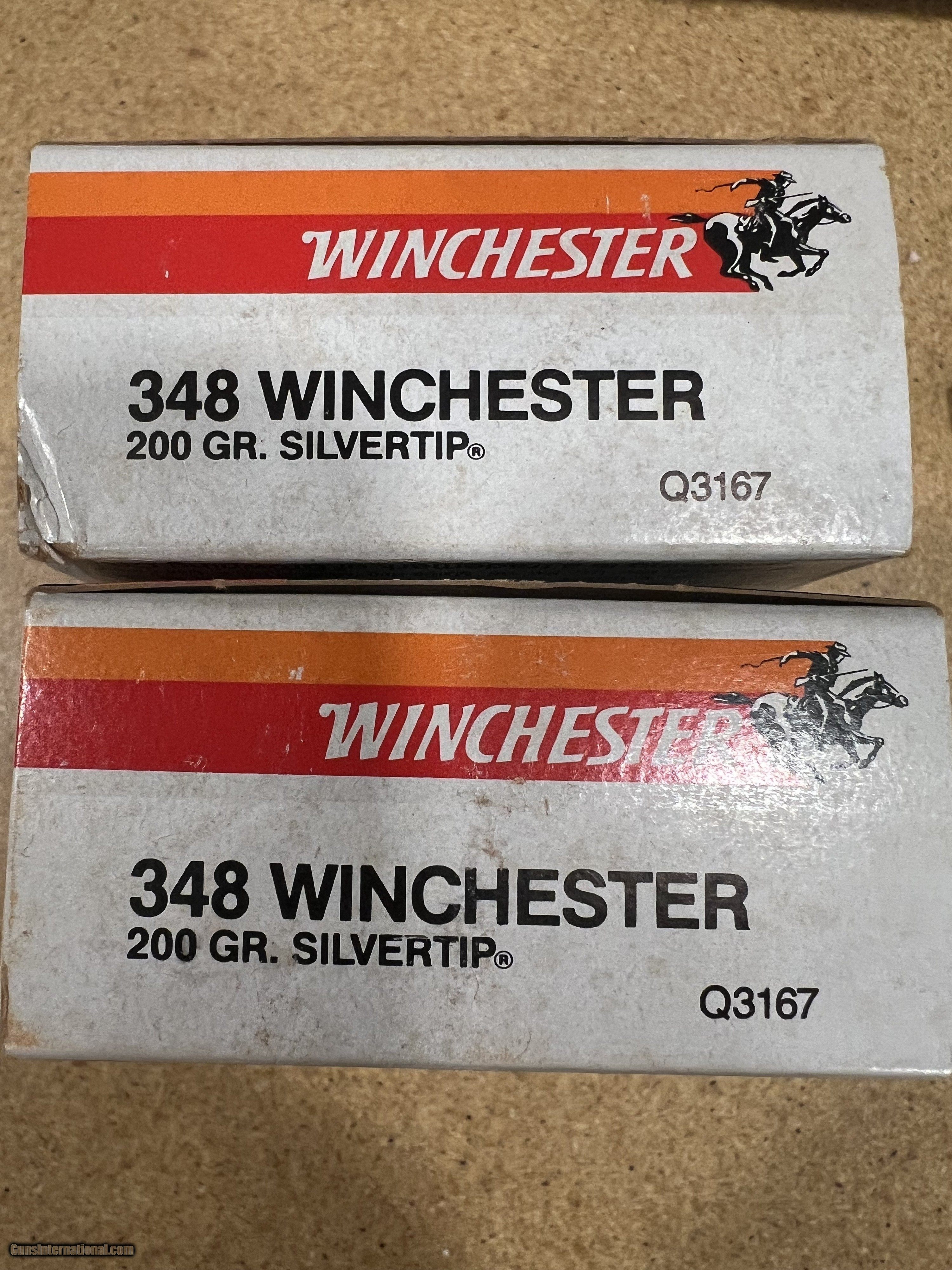 Here's 2 factory full boxes of Winchester Super X 348 win 200 grain silvertip ammo for the Browning 71 edition 35.00 UPS shipping 2.99% credit card fee PA residents add 6% sales tax