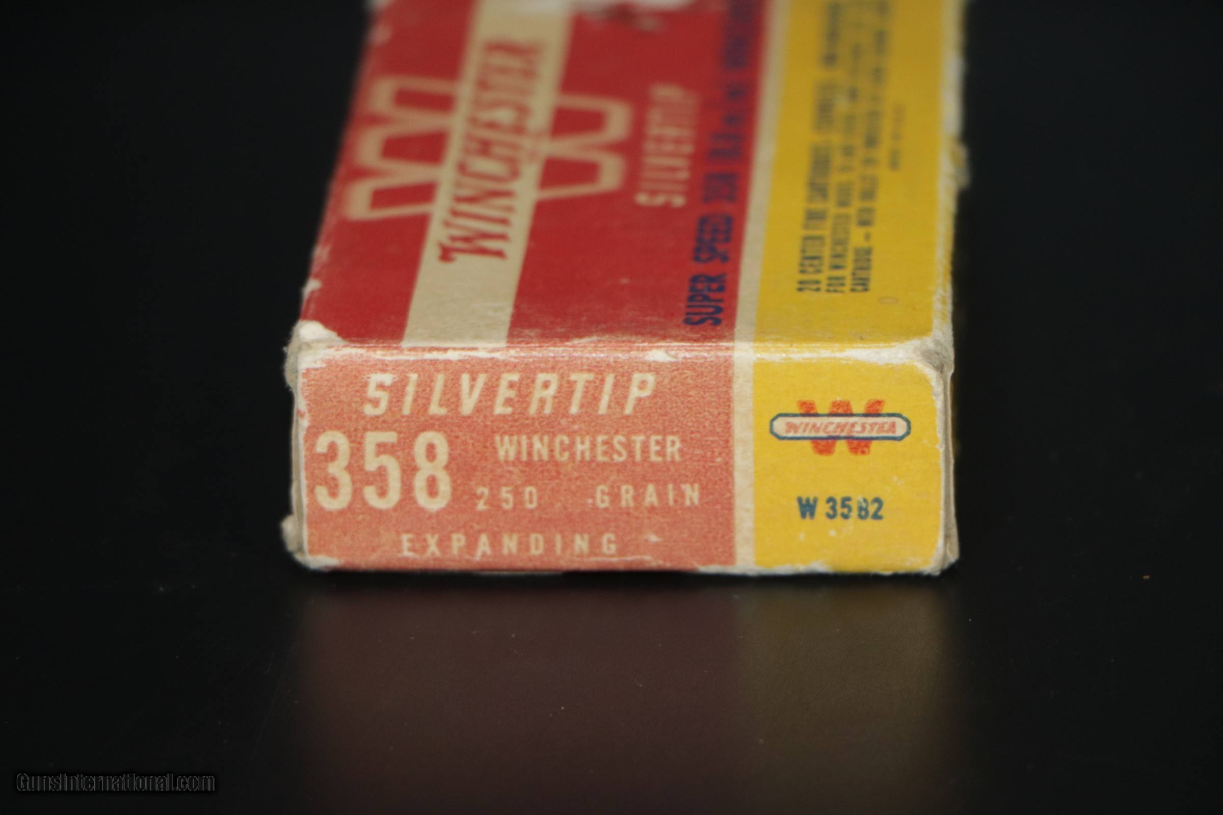 Description: Winchester .358 WIN, Silvertip, SS, 250 Gr, Exp, Code W3582. Ammo is excellent/box is fair. Add $16.50 S+H SOLD Rifle Caliber: .358 Winchester |