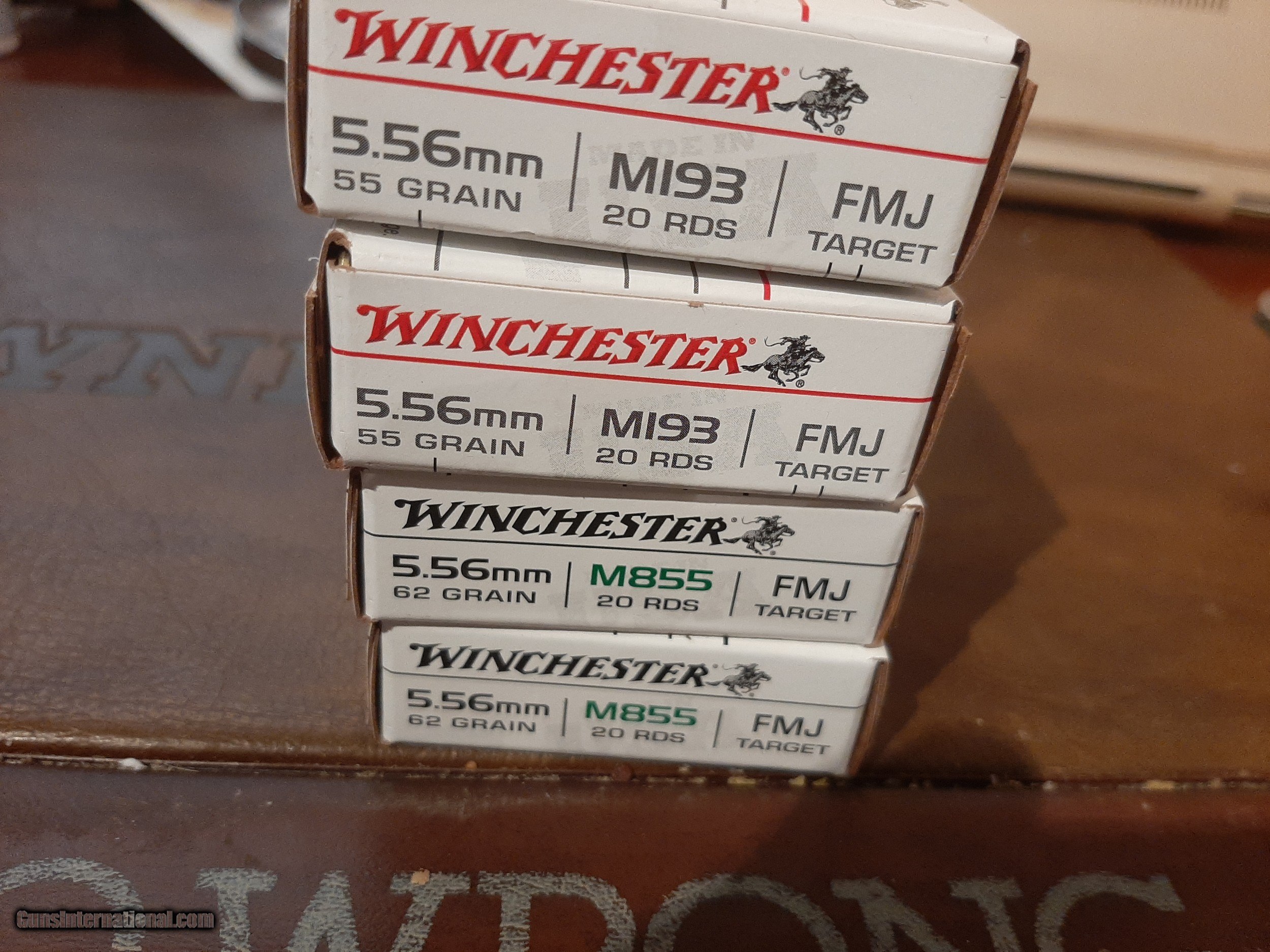 Description: Winchester 5.56 55 GR M855 Winchester 5.56 55 GR M198 80 total Factory Rounds. Credit cards add 3%. Shipping and Insurance is 12.00 SOLD Rifle Caliber: 5.56x45mm NATO |