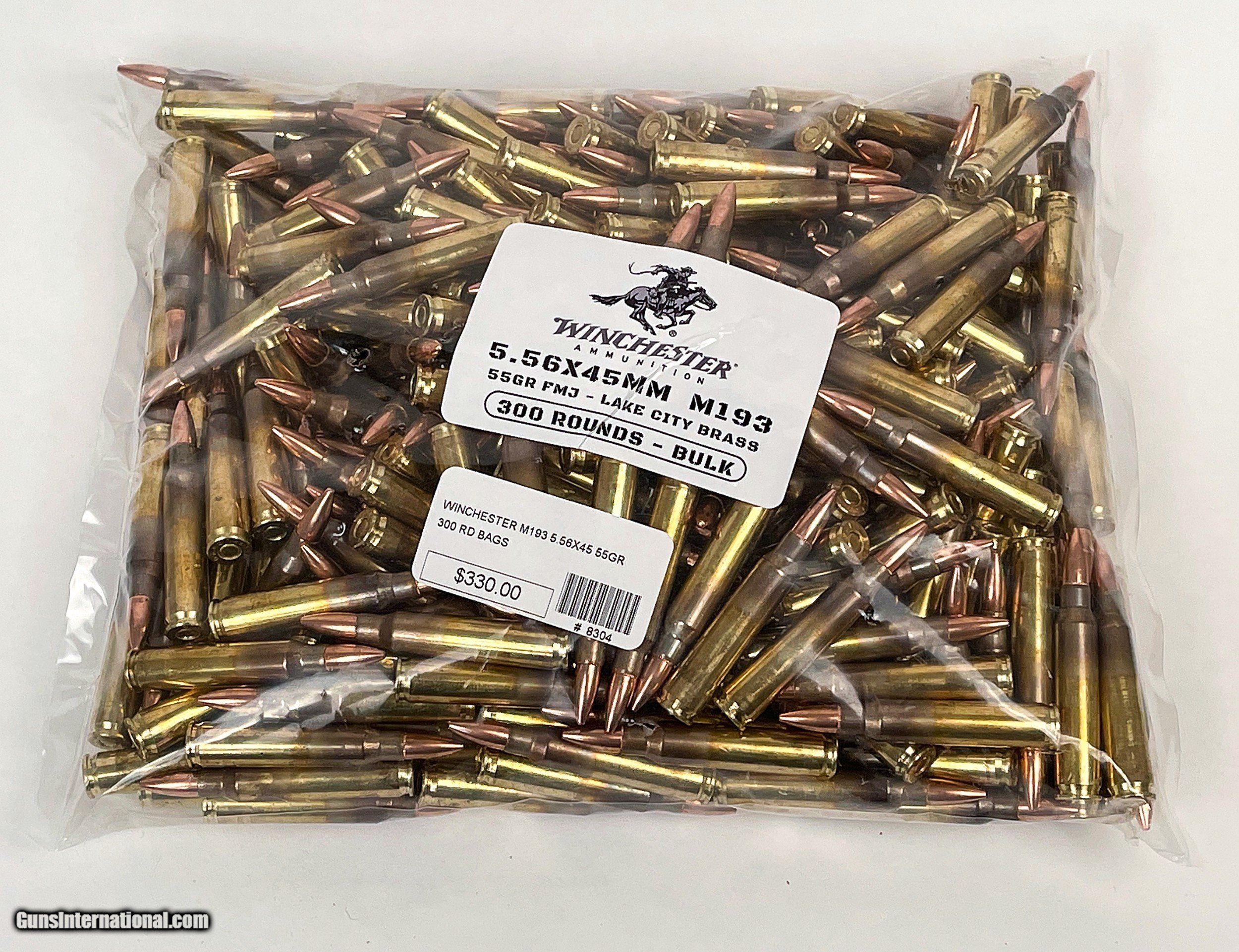 Description: 300 Rounds LOADED BY Winchester. FEATURES A BRASS CASE AND BI-Metal JACKETED LEAD CORE BULLET. Winchester M193 5.56x45 55gr 300 round bulk SOLD |
