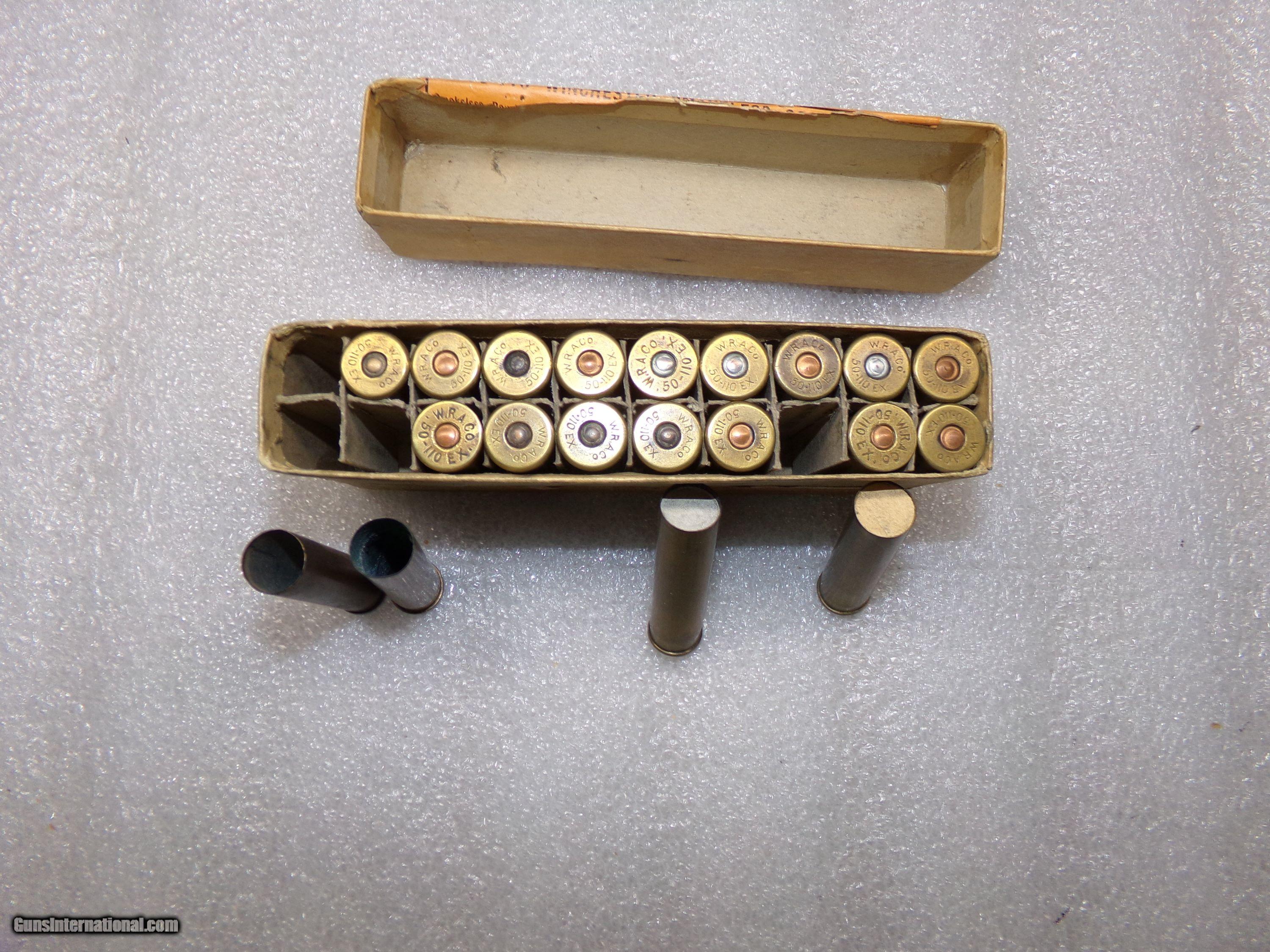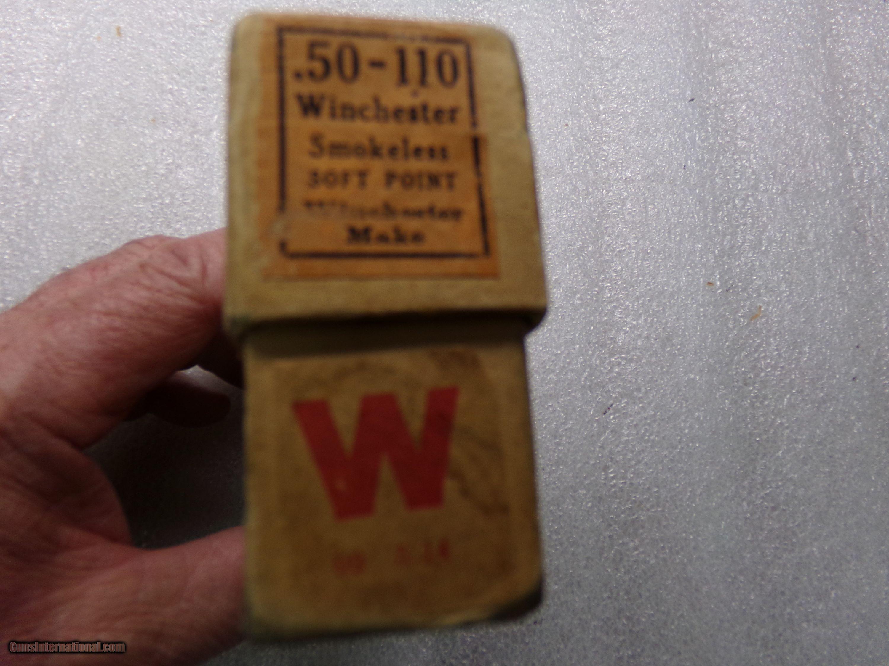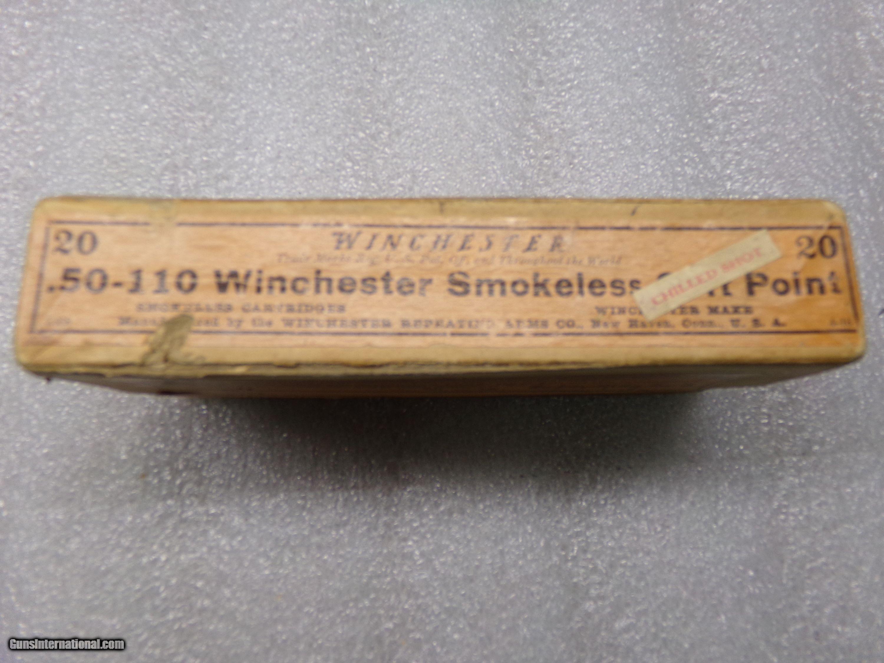 Description: Winchester .50-110-300 for 1886 rifles marked "50-110 EX". The box is full of original cartridges. 2 of which have been fired. Date 4-16. "CHILLED SHOT" add on sticker. Free shipping. No Calif sales. Thanks. SOLD |